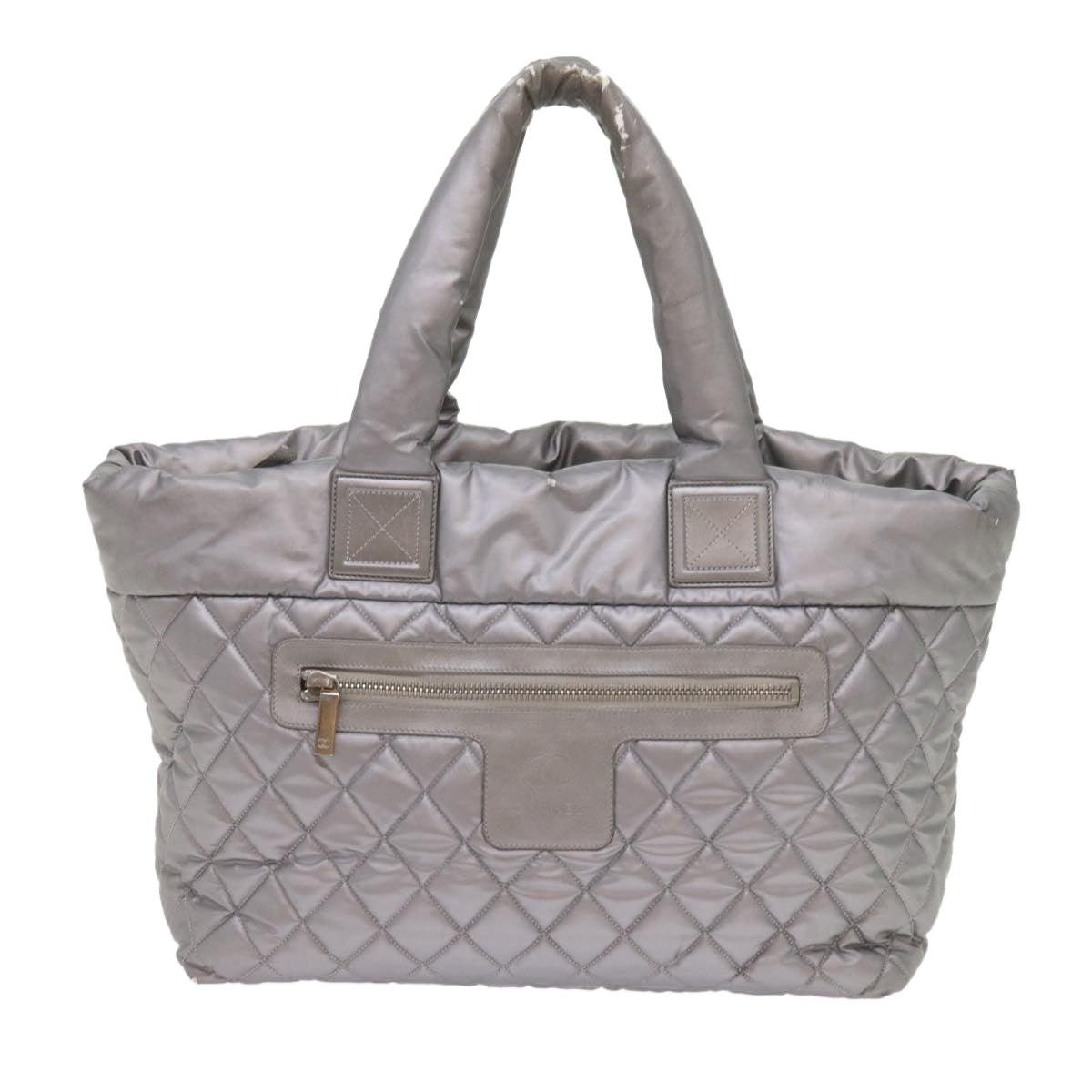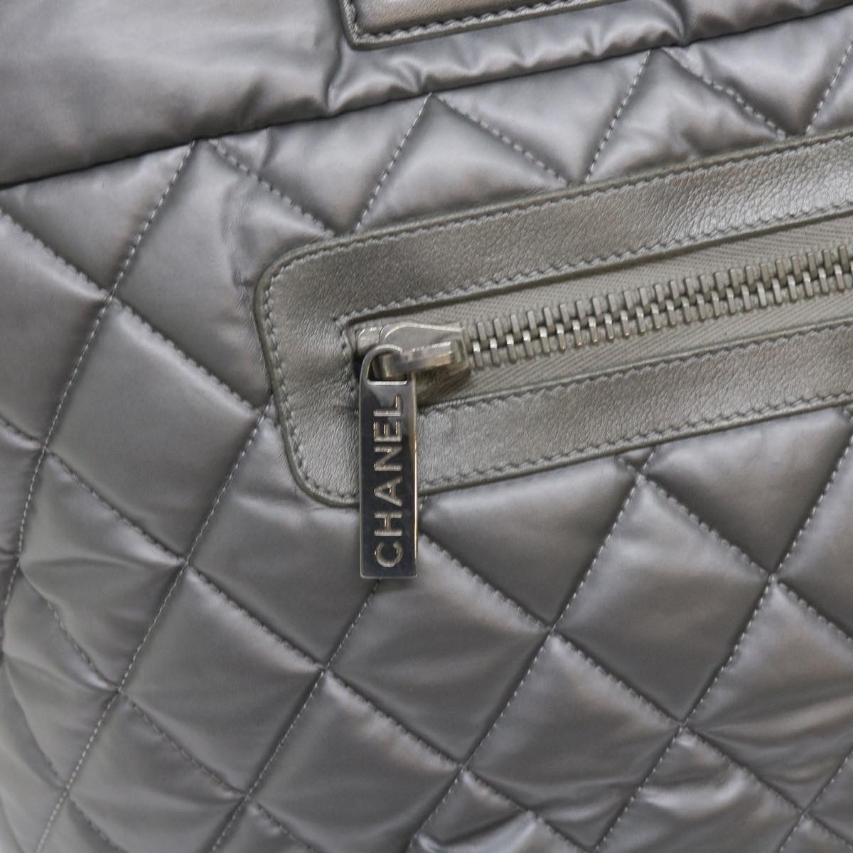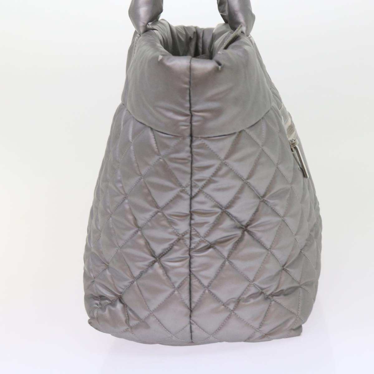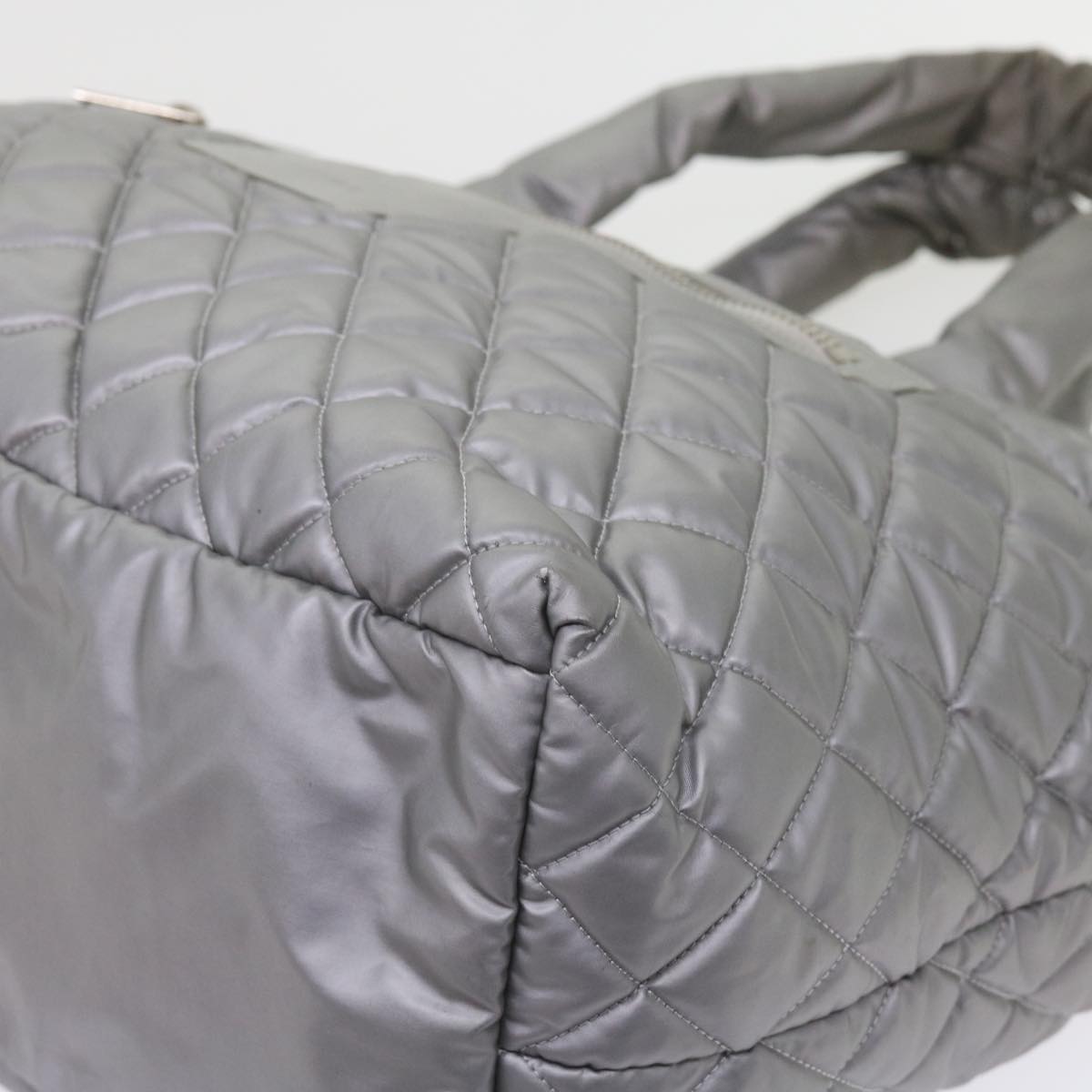 CHANEL Cococoon Hand Bag Patent leather Silver CC Auth bs10169