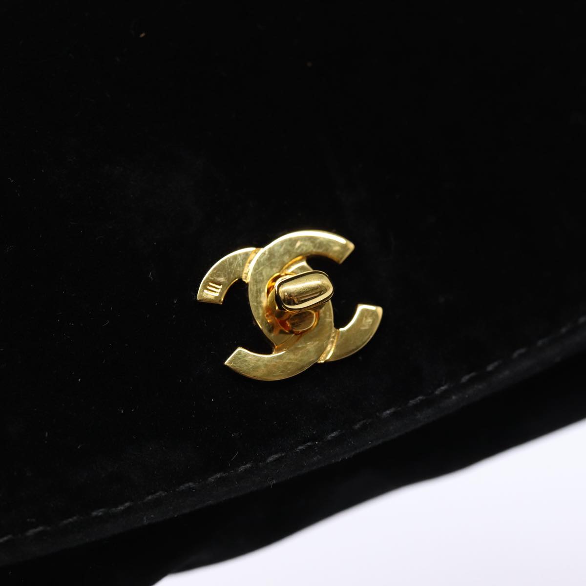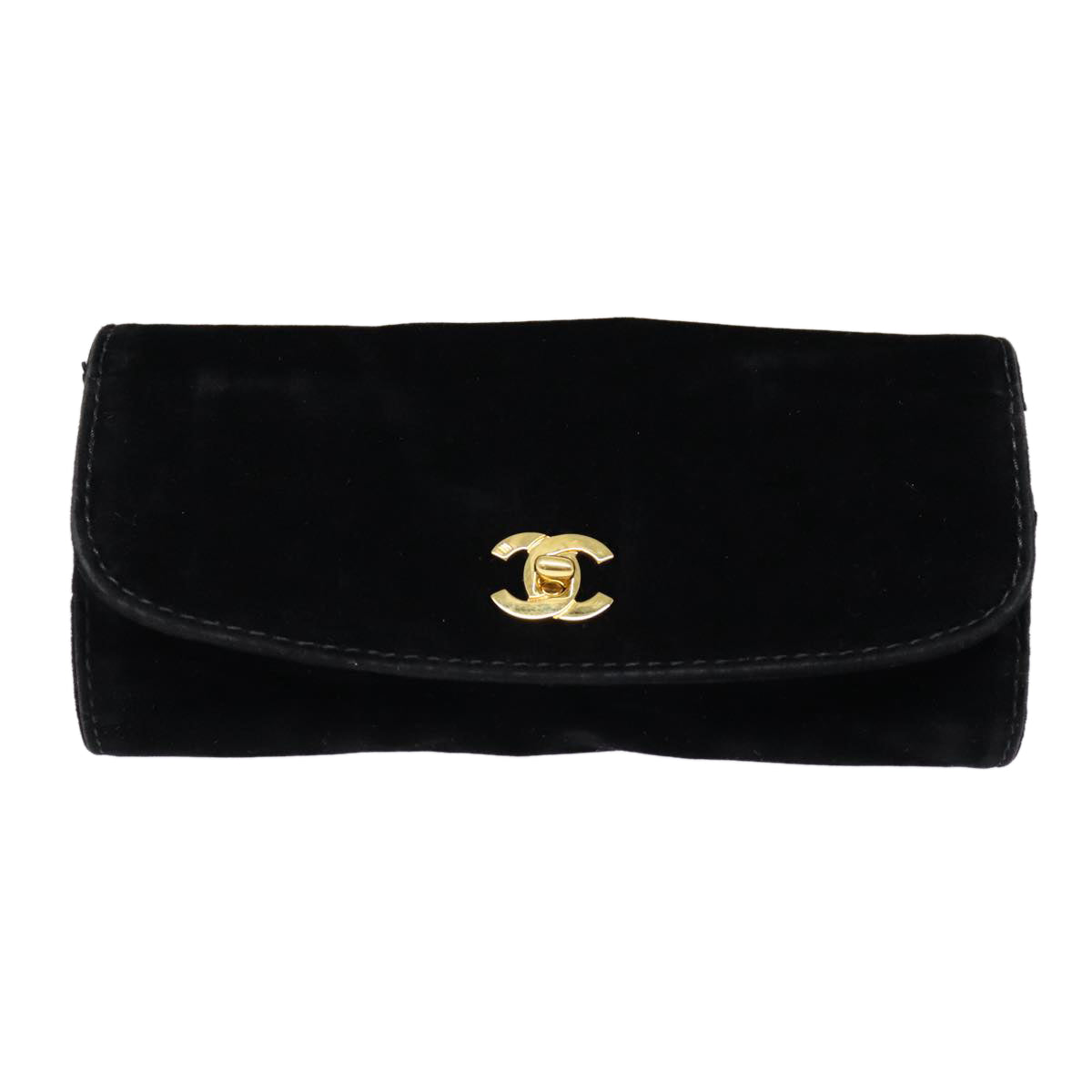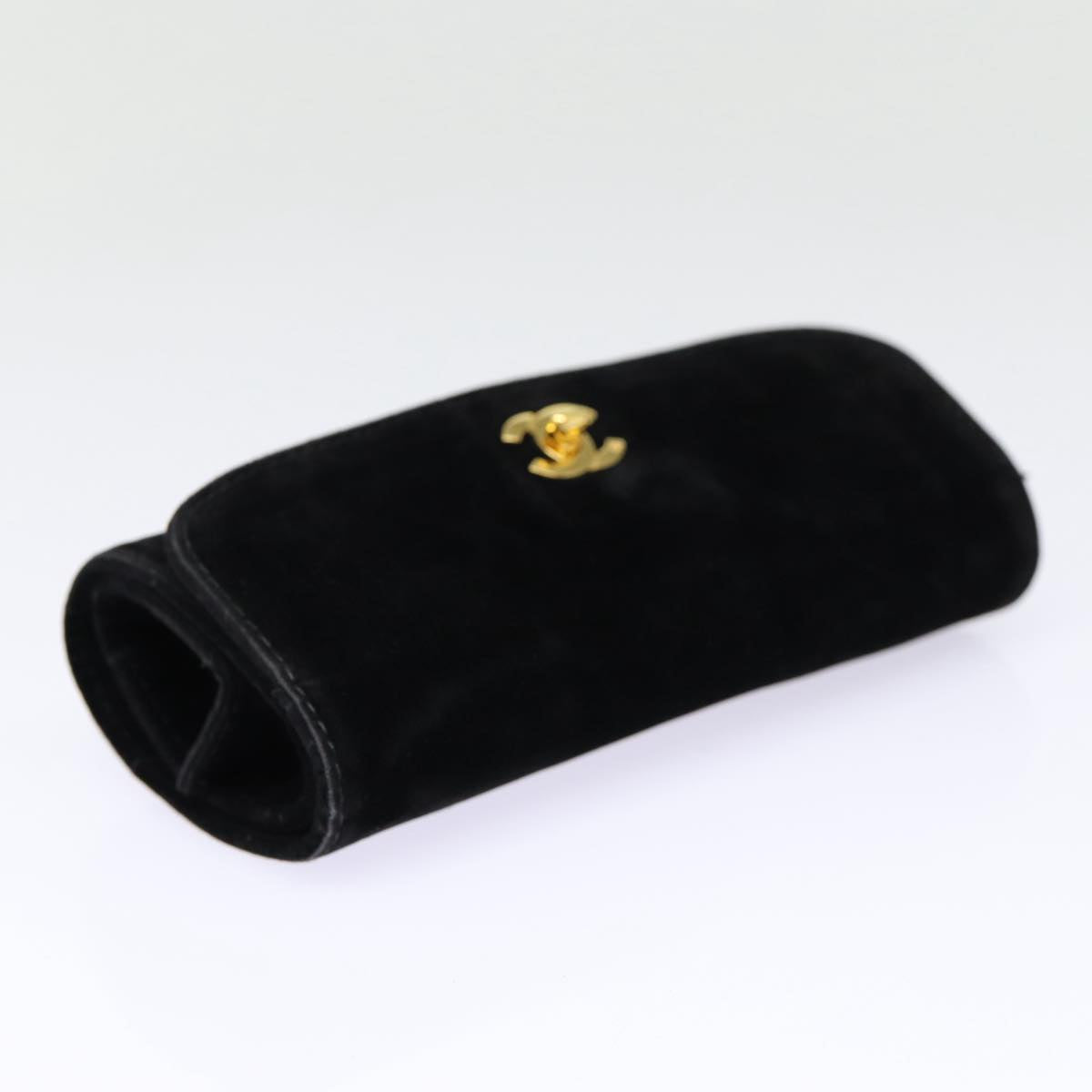 CHANEL Cosmetic Case Cosmetic Pouch Velor Black Gold CC Auth bs17507
