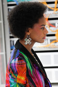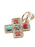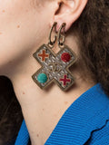 Crafted from silver and champagne metal, and finished with two small red enamel crosses and two enamel circles with a cross that hangs from a mono clip that secures your lobe with a clip-on fastening.