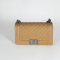Top Quality Chanel Dark Gold Quilted Caviar Old Medium Boy Bag