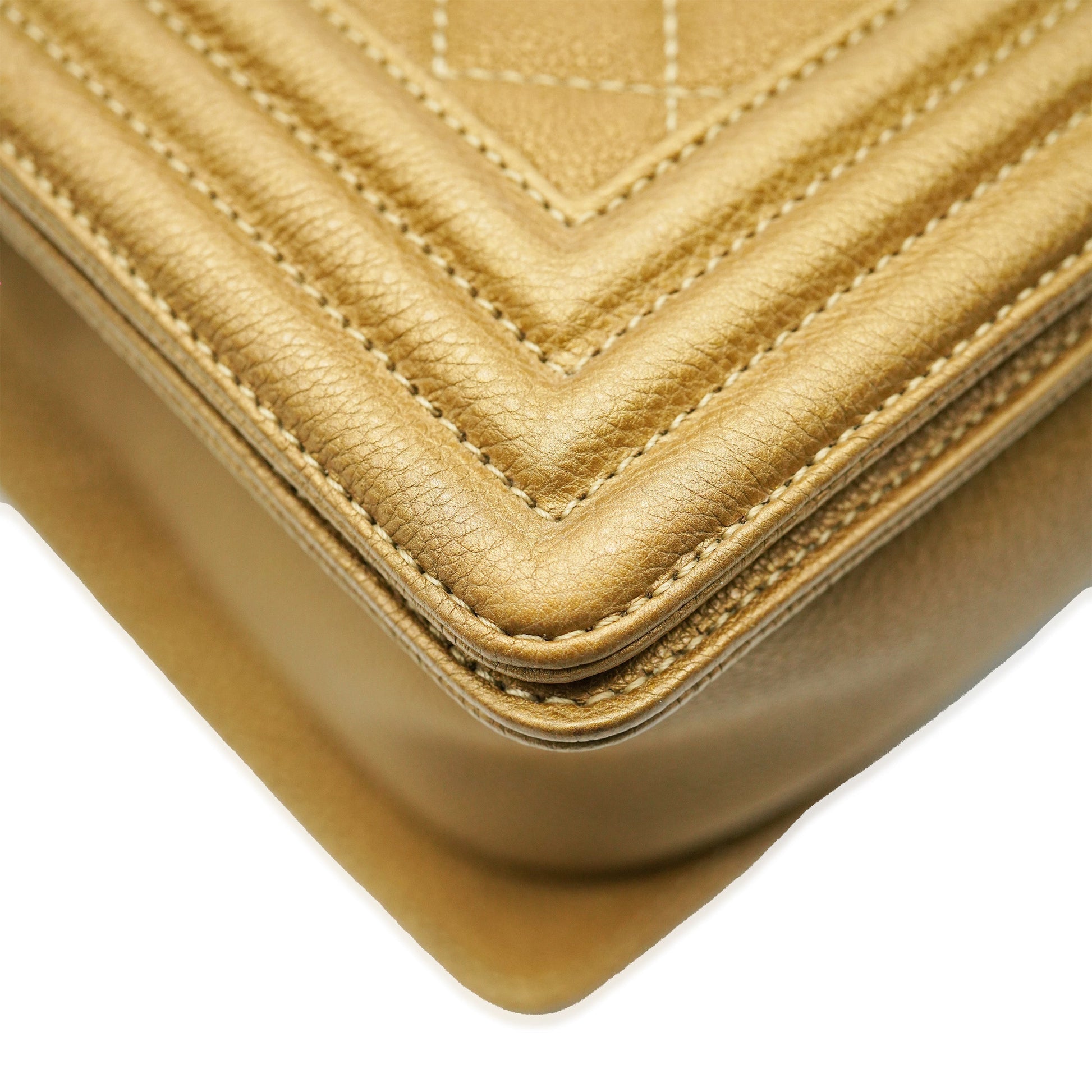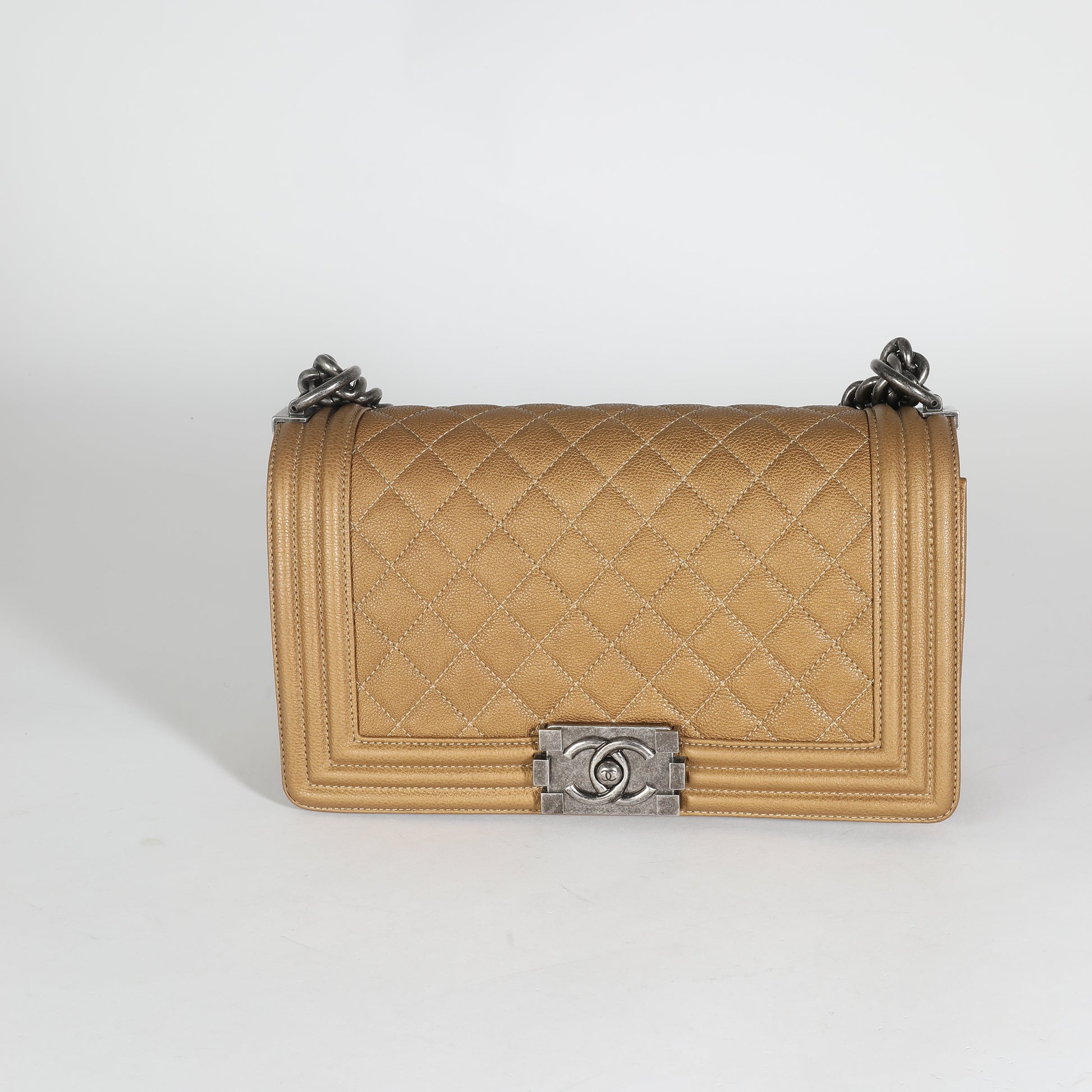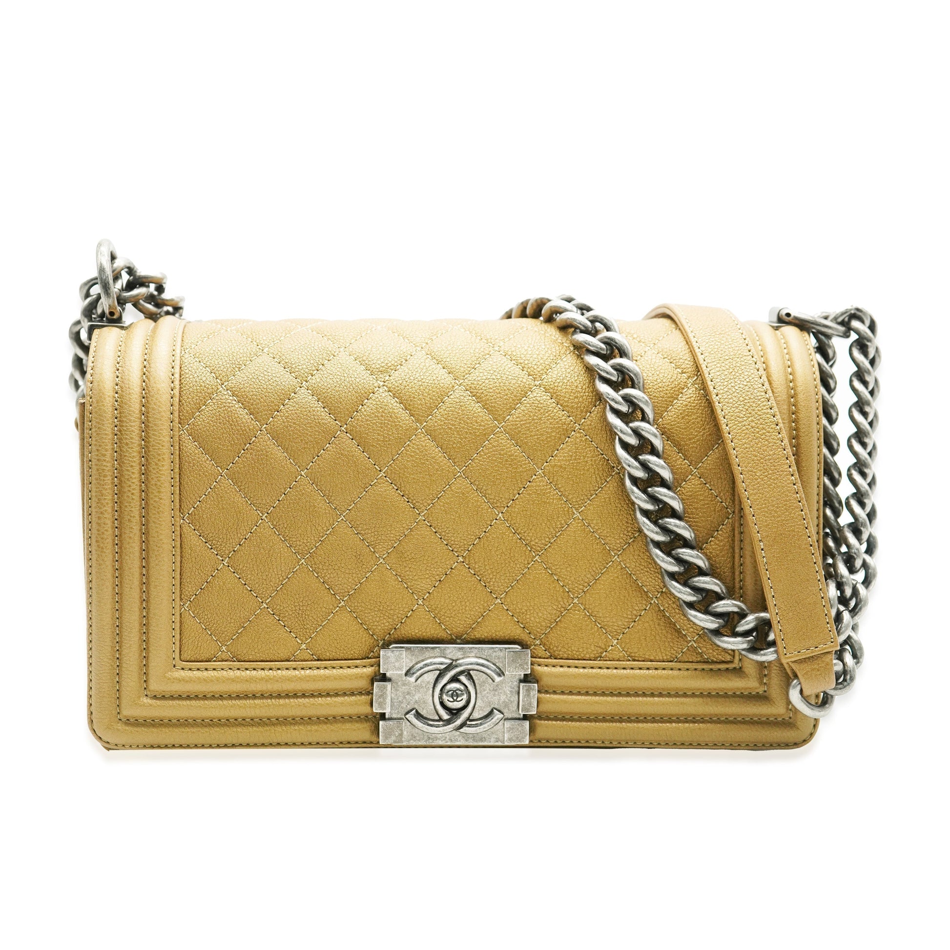 Listing Title: Chanel Dark Gold Quilted Caviar Old Medium Boy Bag