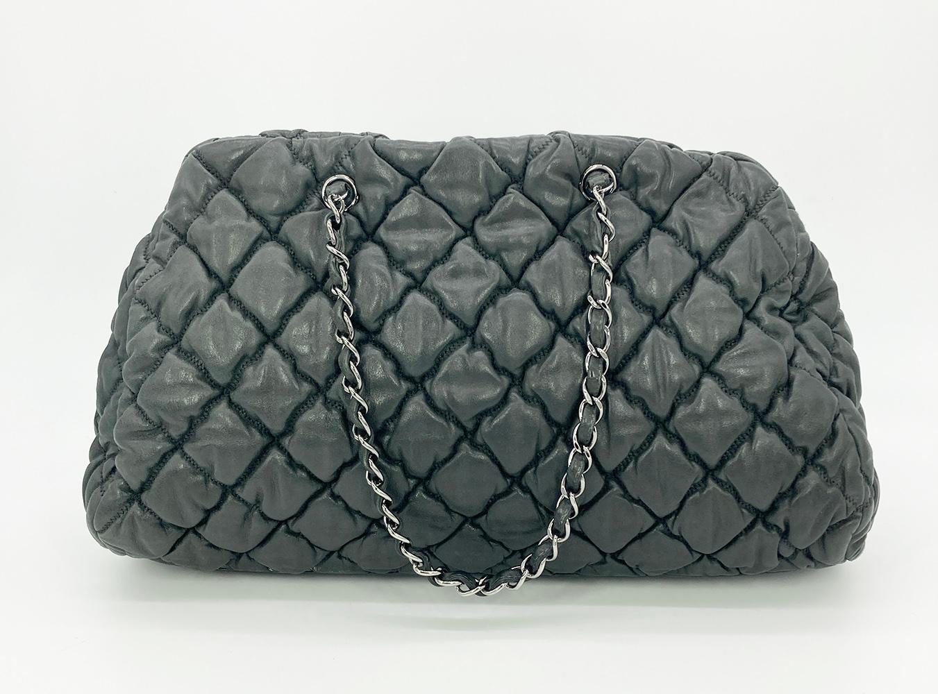 Top Quality Chanel Dark Gray Quilted Puffy Leather Shoulder Bag Tote