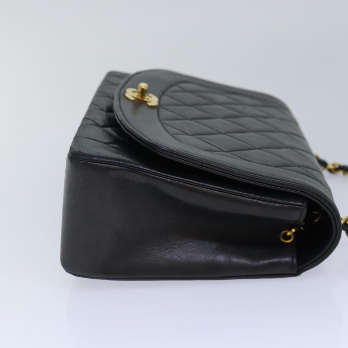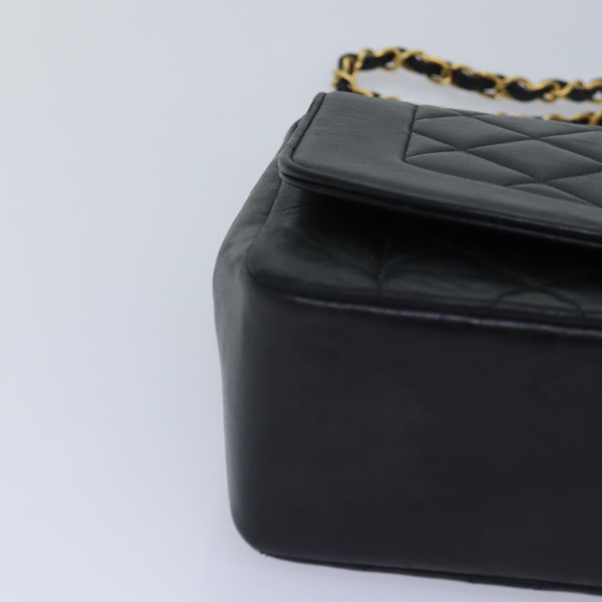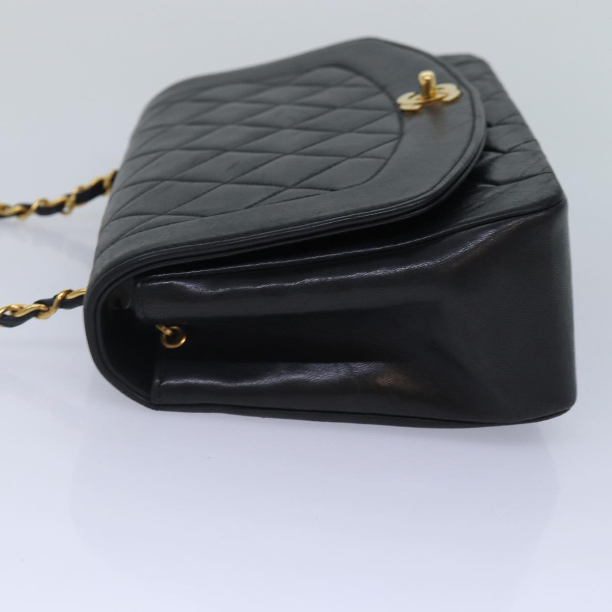CHANEL Diana Matelasse Chain Shoulder Bag Lamb Skin Black CC Auth 87740A