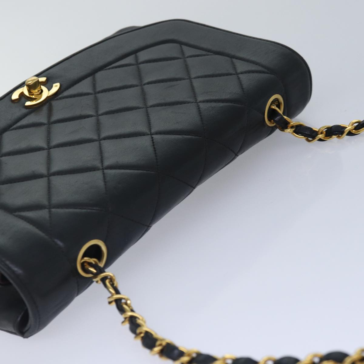 Top Quality Chanel Diana Matelasse Chain Shoulder Bag Lamb Skin Black CC Auth 87740A