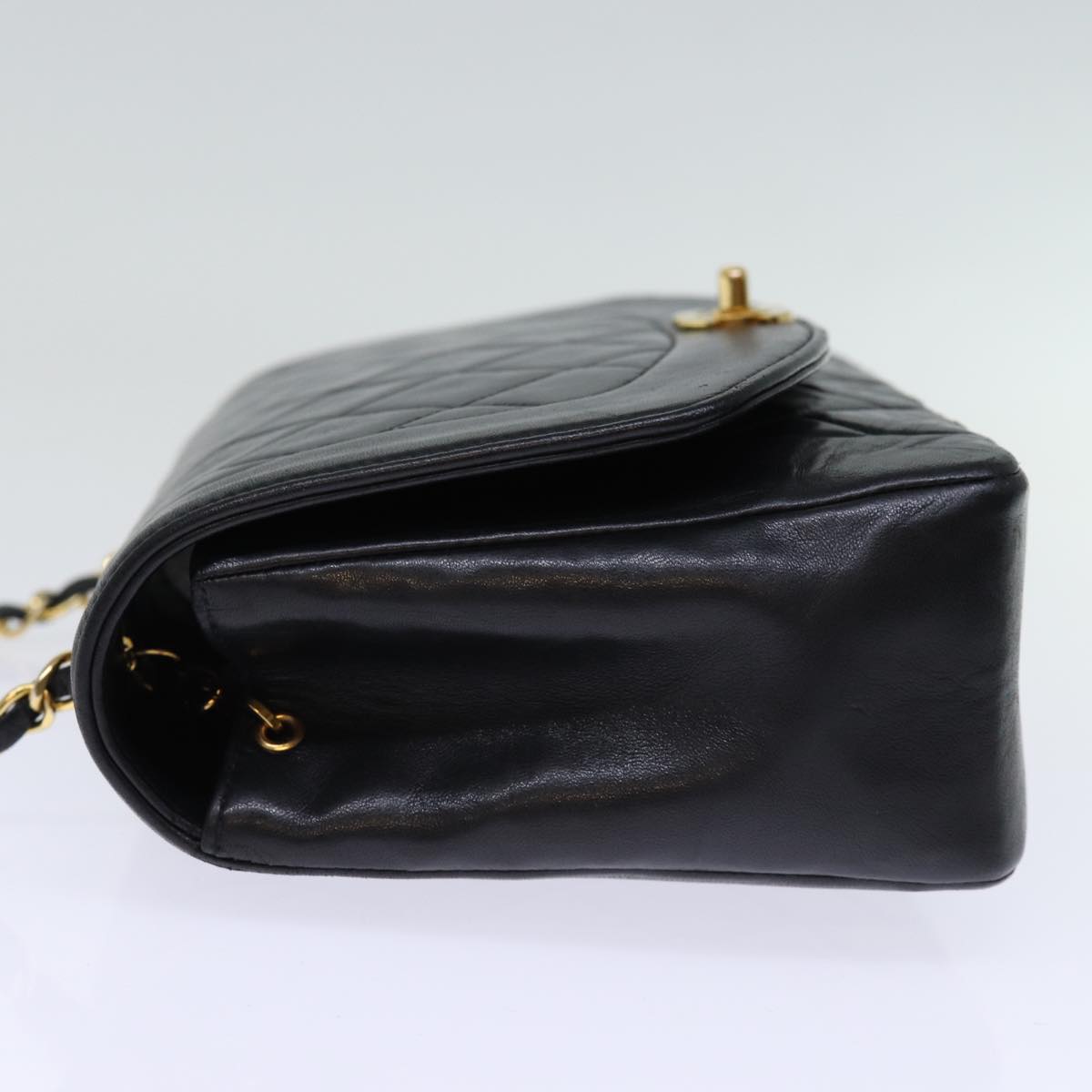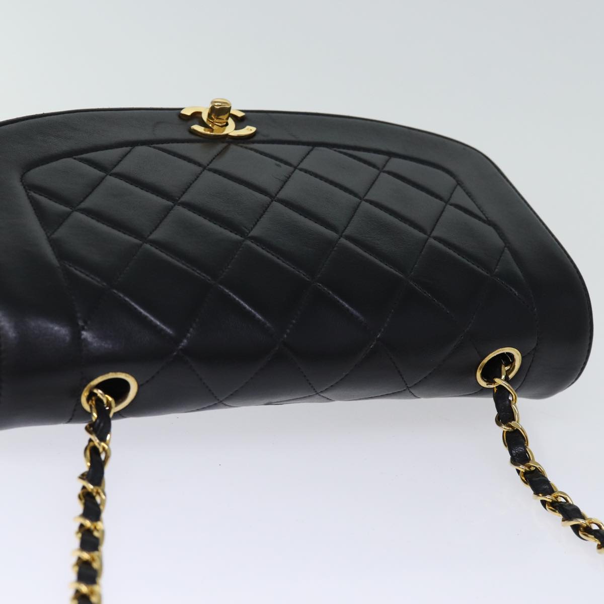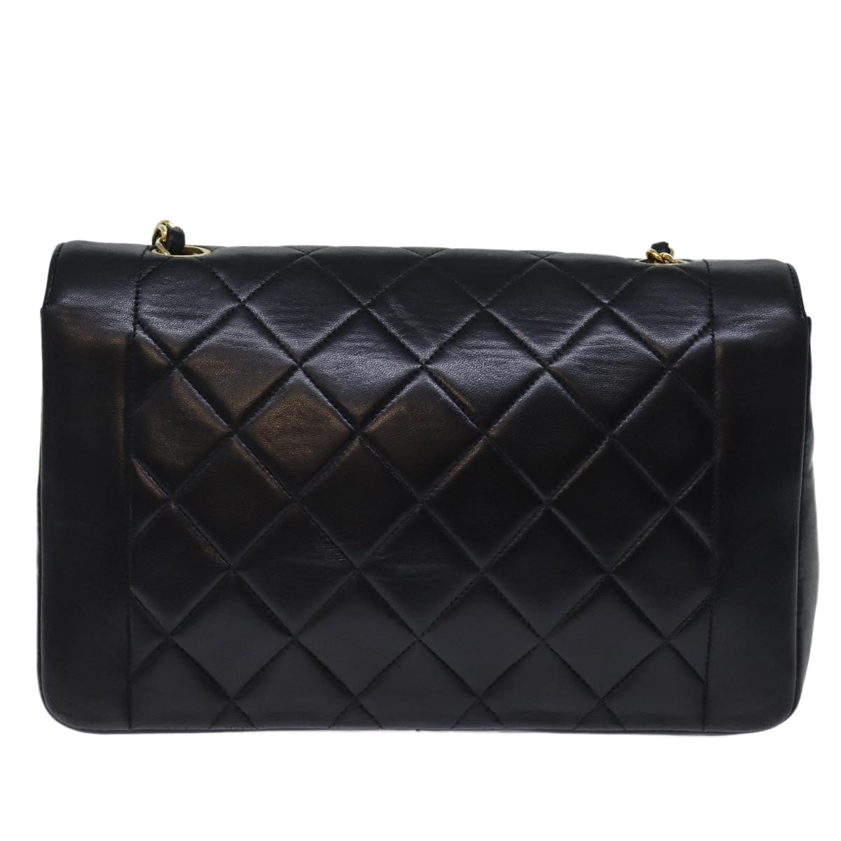 CHANEL Diana Matelasse Chain Shoulder Bag Lamb Skin Black CC Auth yk12418A