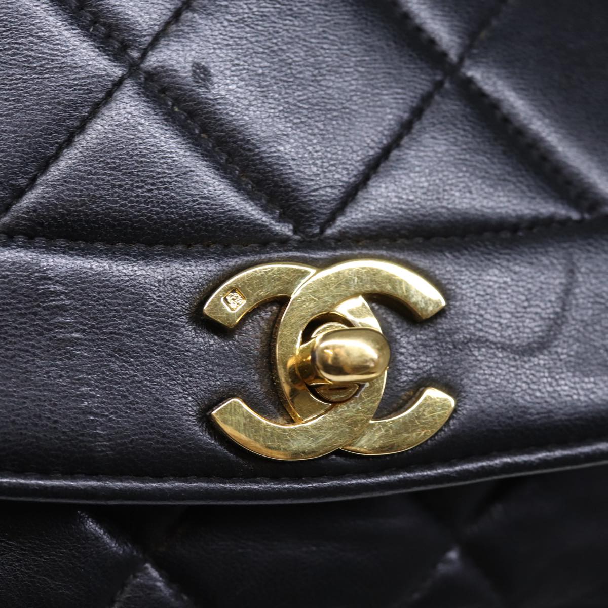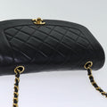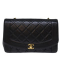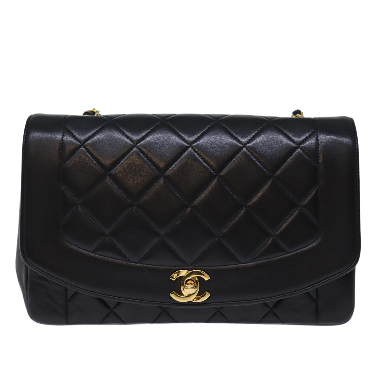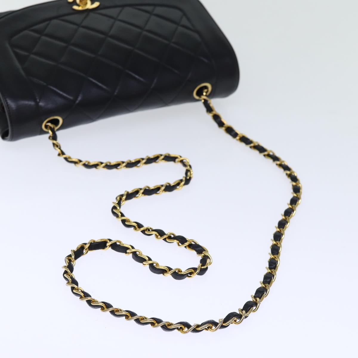 CHANEL Diana Matelasse Chain Shoulder Bag Lamb Skin Black CC Auth yk12418A