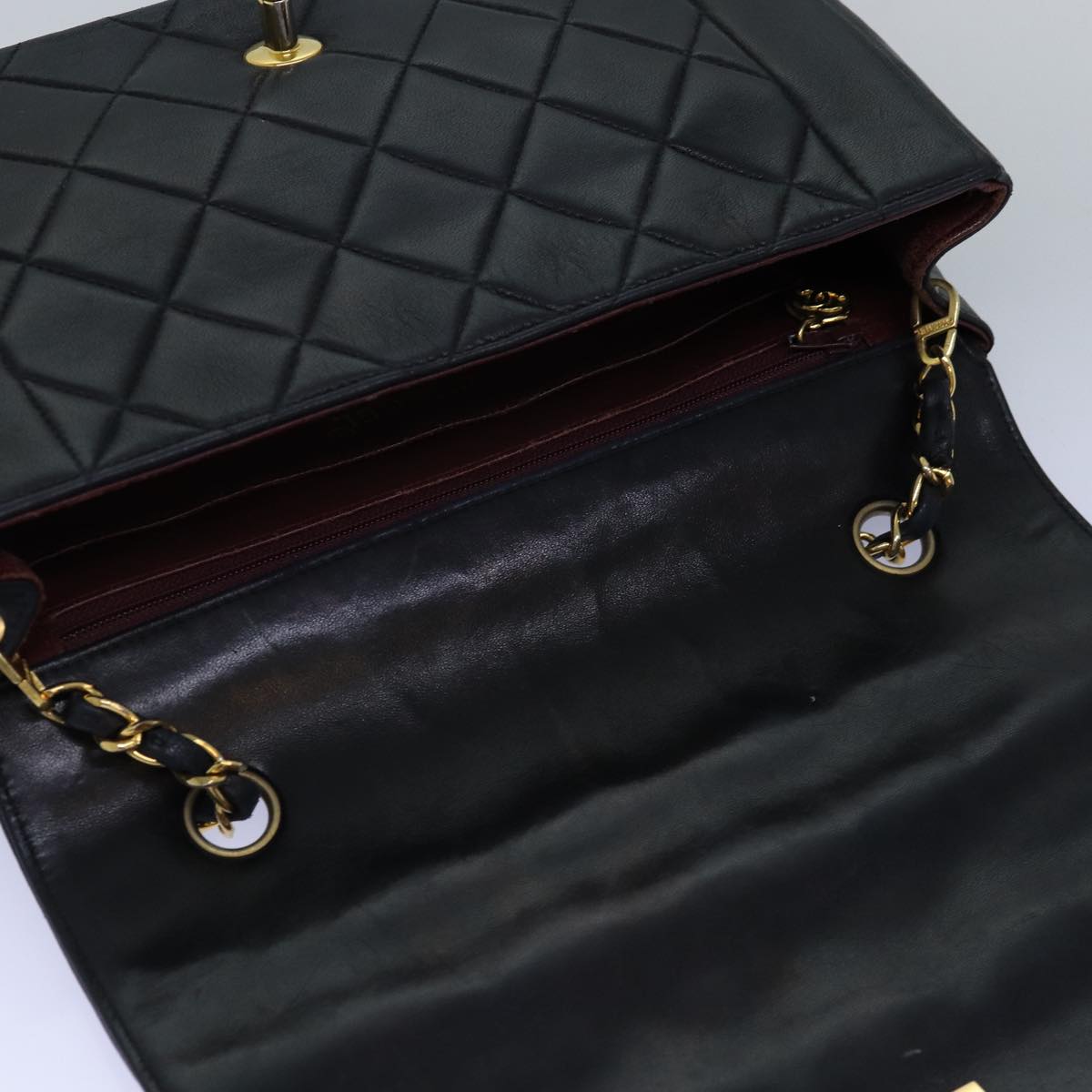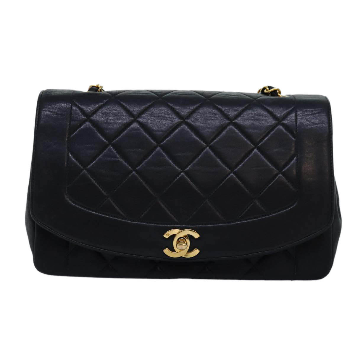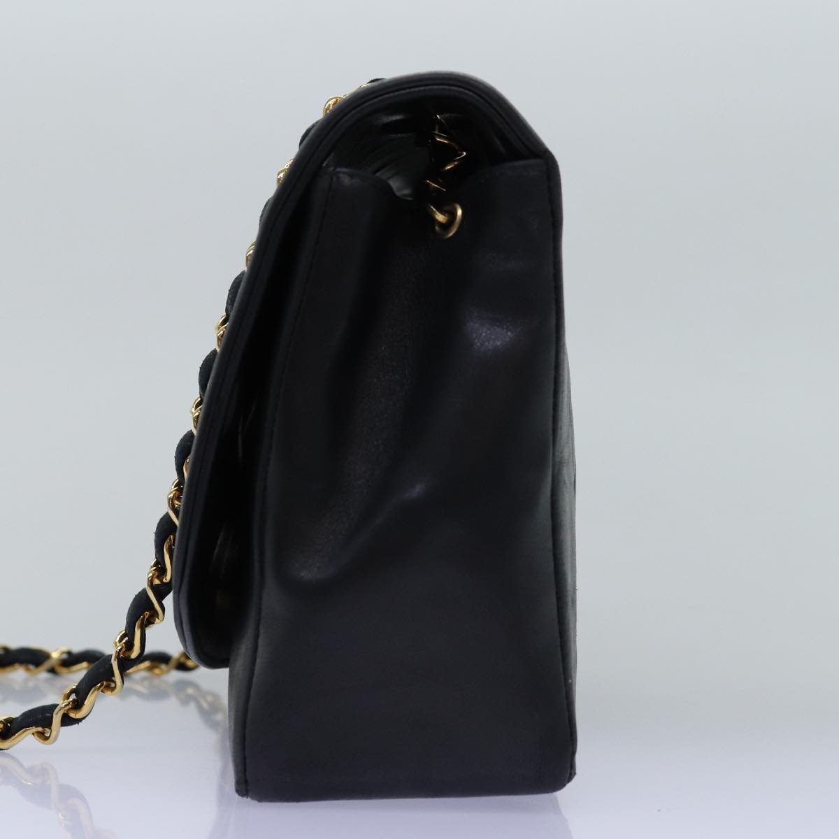 CHANEL Diana Matelasse Chain Shoulder Bag Lamb Skin Black CC Auth yk12474