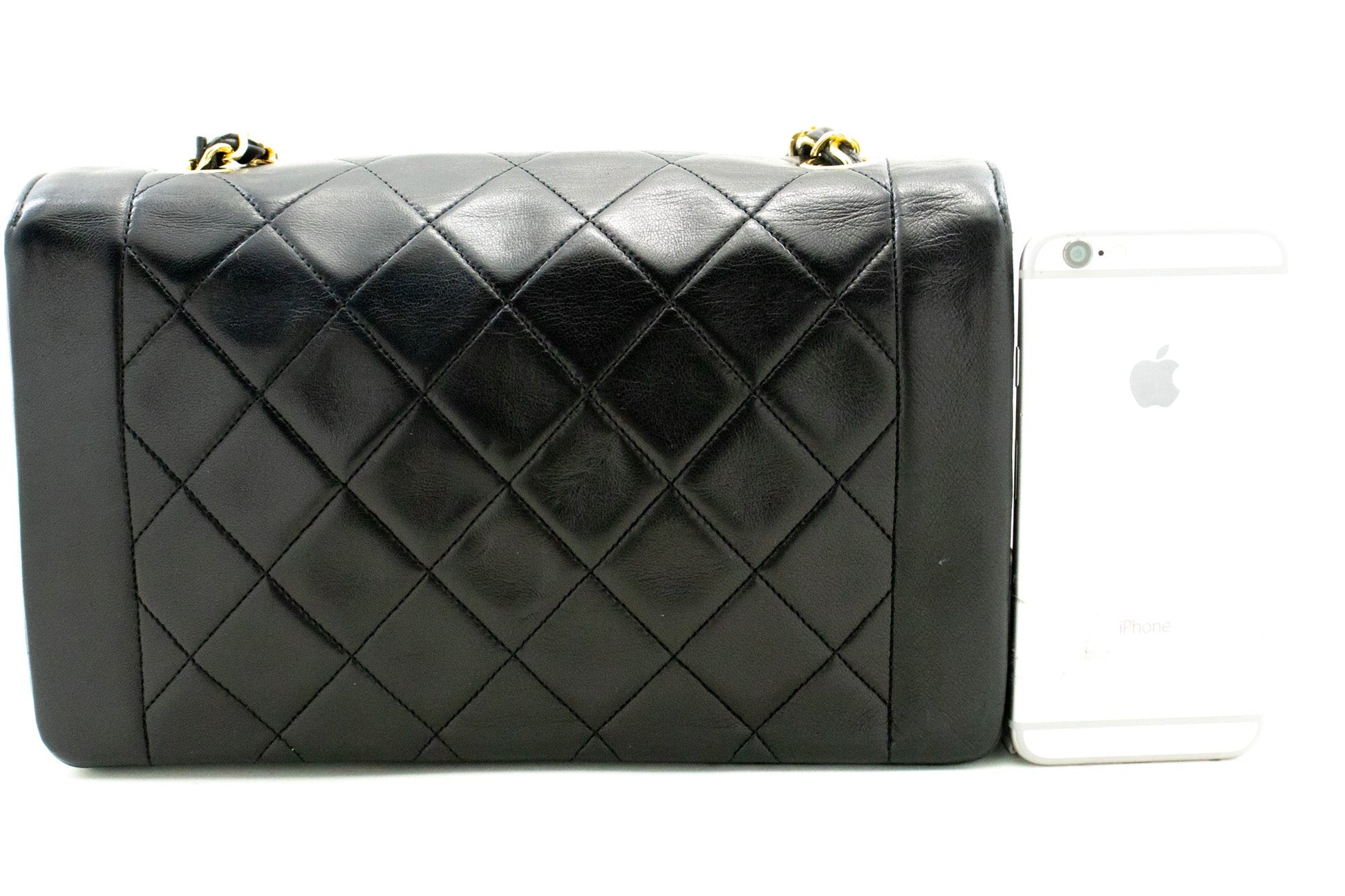 An CHANEL Diana New Chain Shoulder Bag Black Quilted made of black Lambskin Purse.