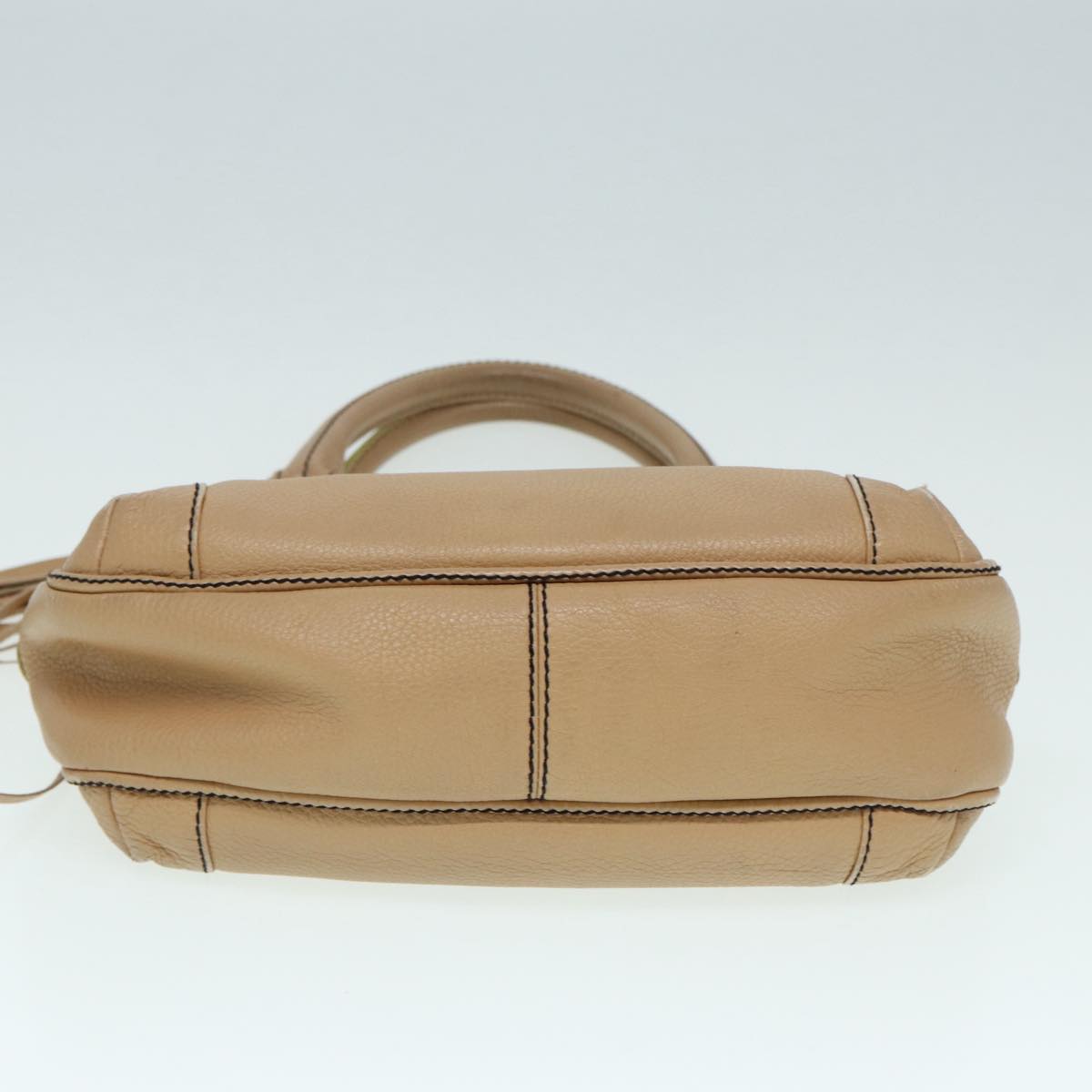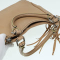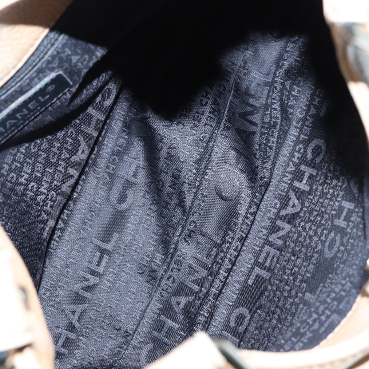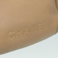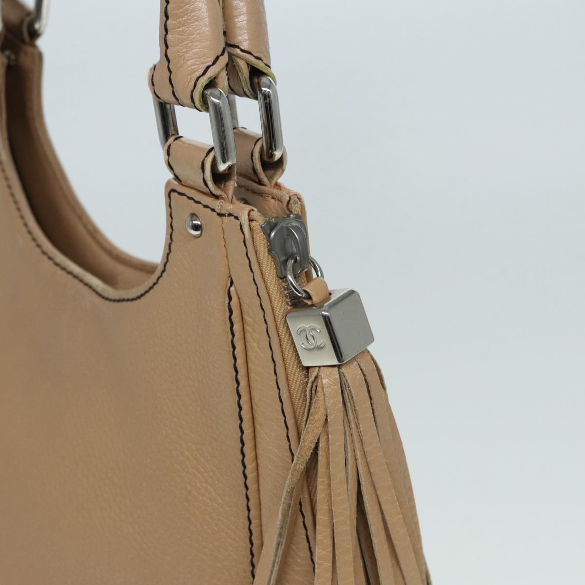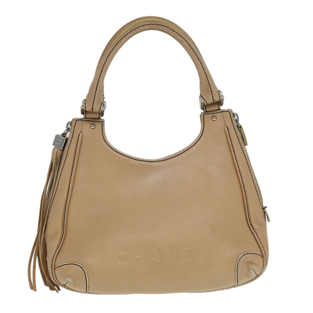 CHANEL Fringe Hand Bag Leather Beige CC Auth 87088