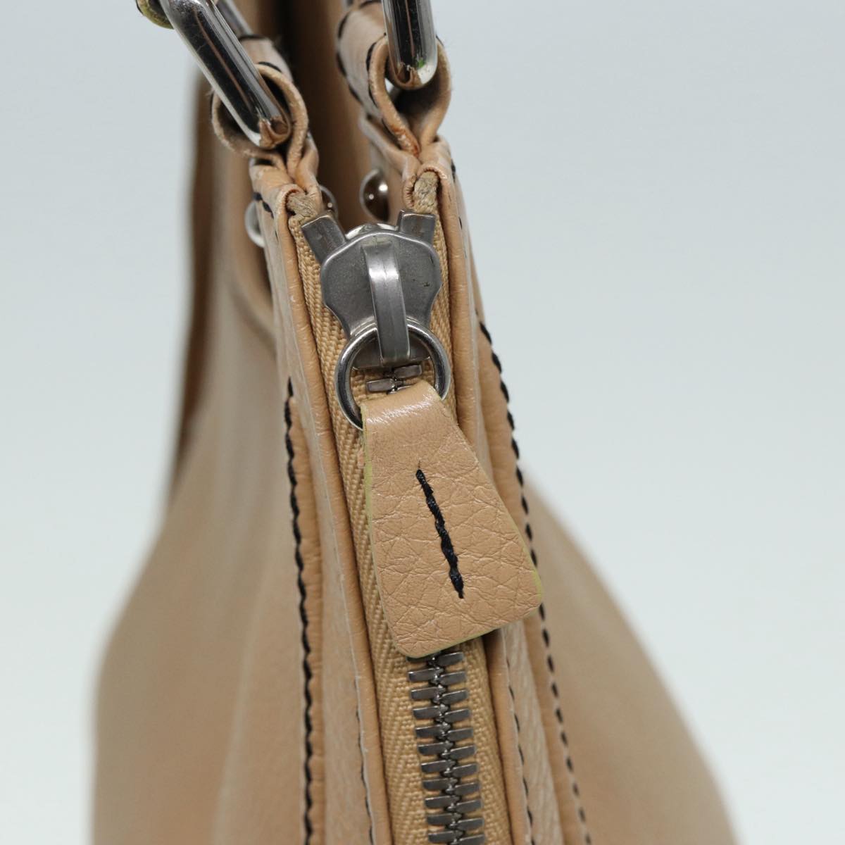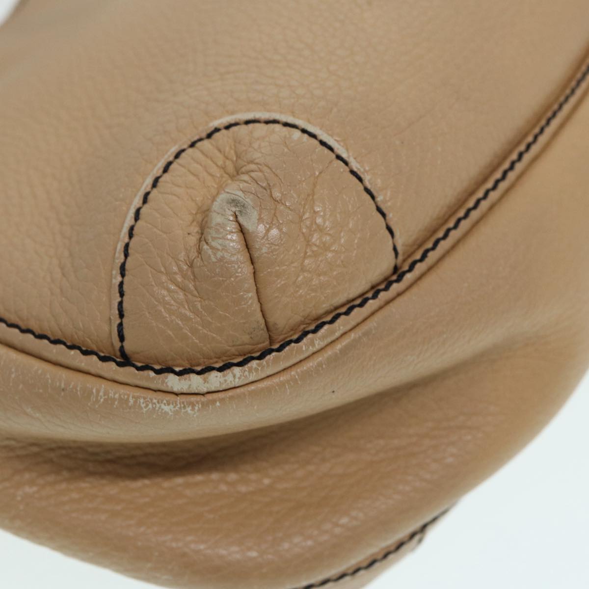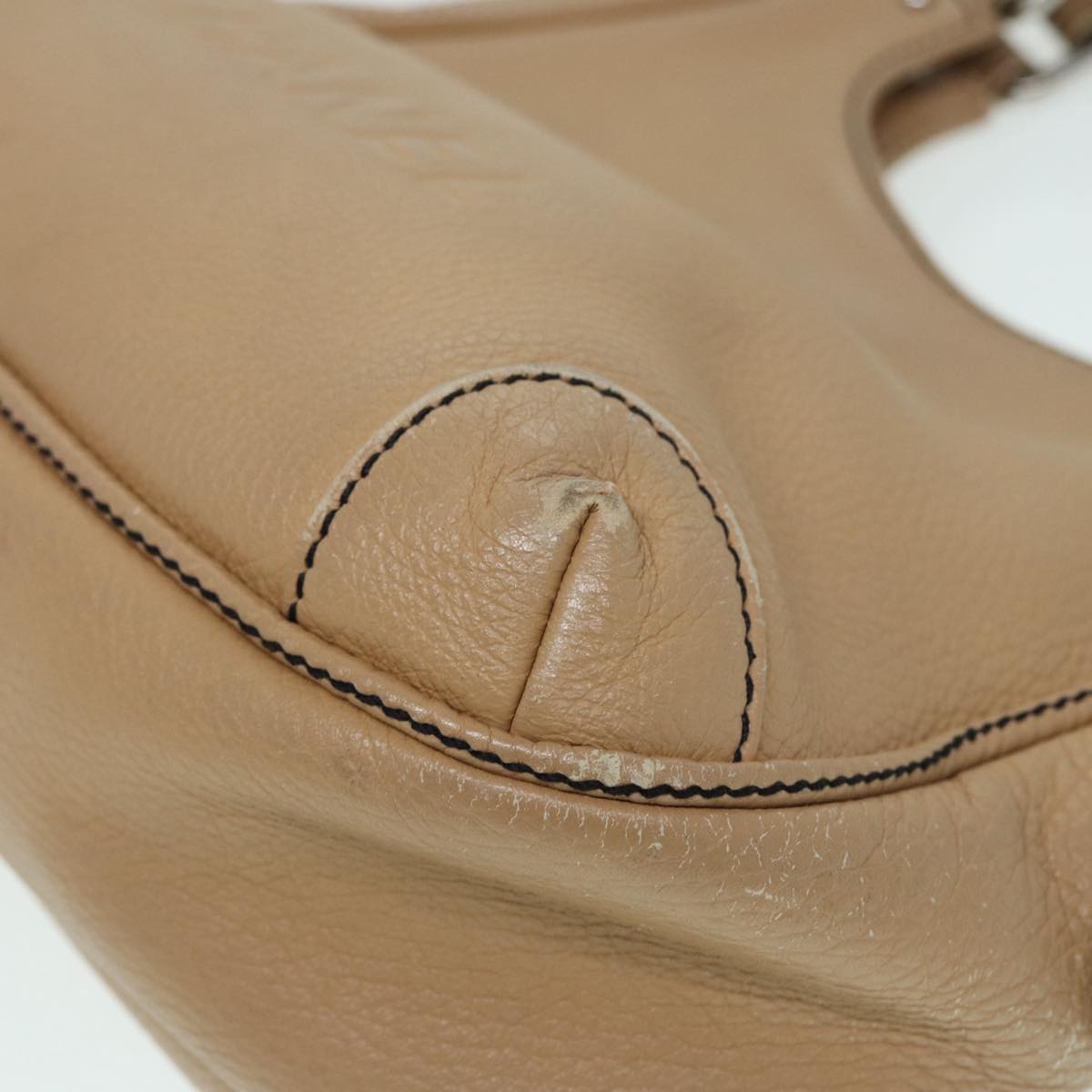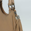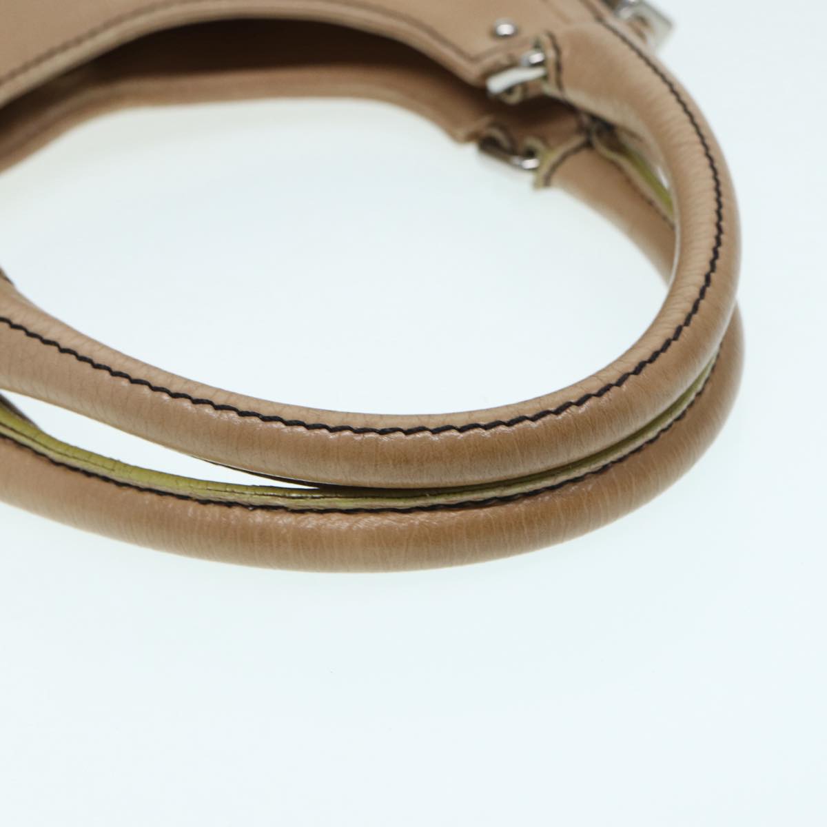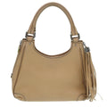 CHANEL Fringe Hand Bag Leather Beige CC Auth 87088
