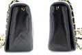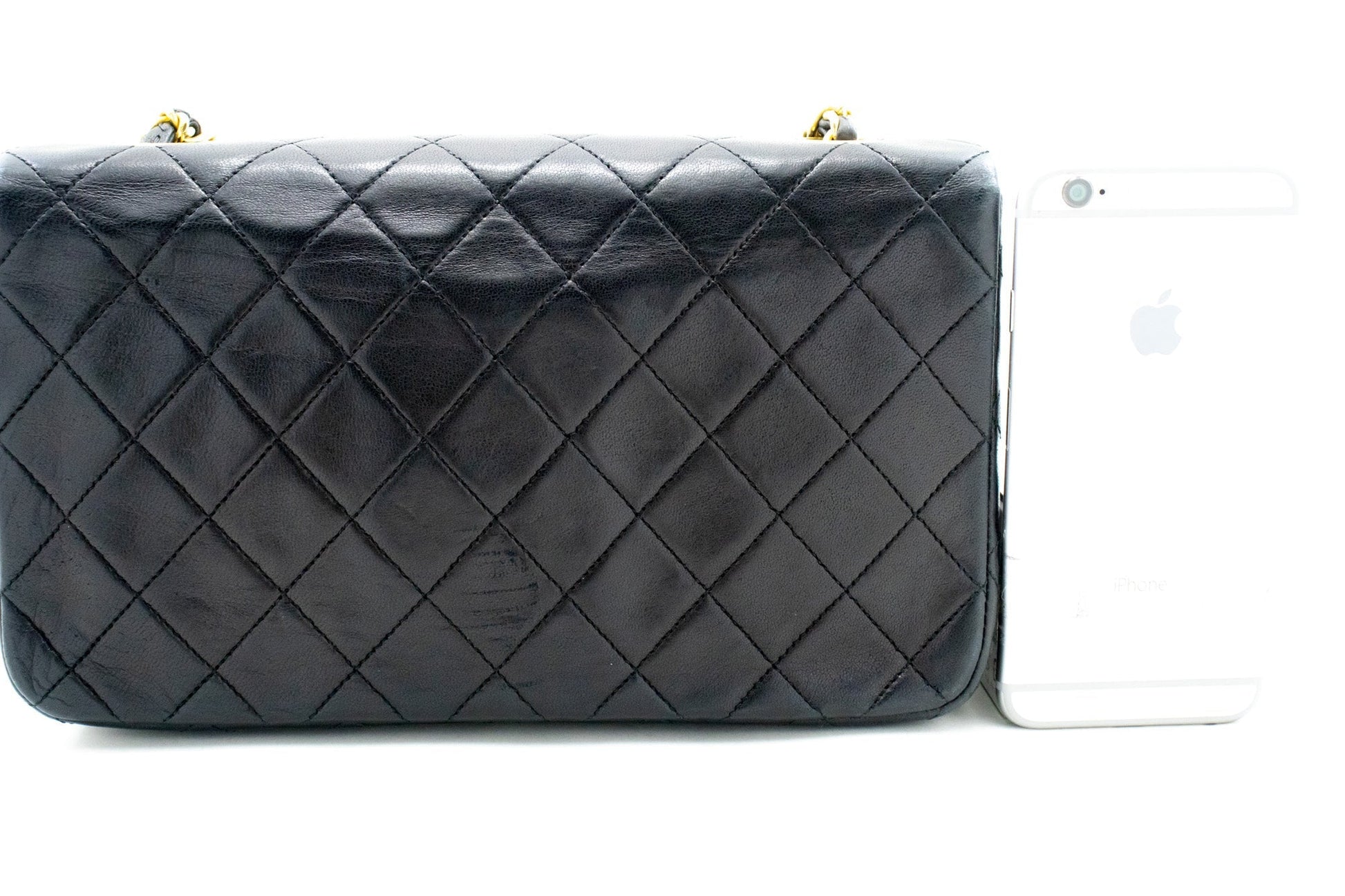 An CHANEL Full New Chain Shoulder Bag Black Quilted made of black Lambskin.