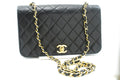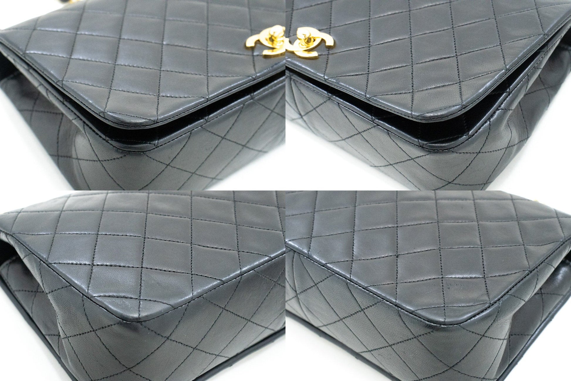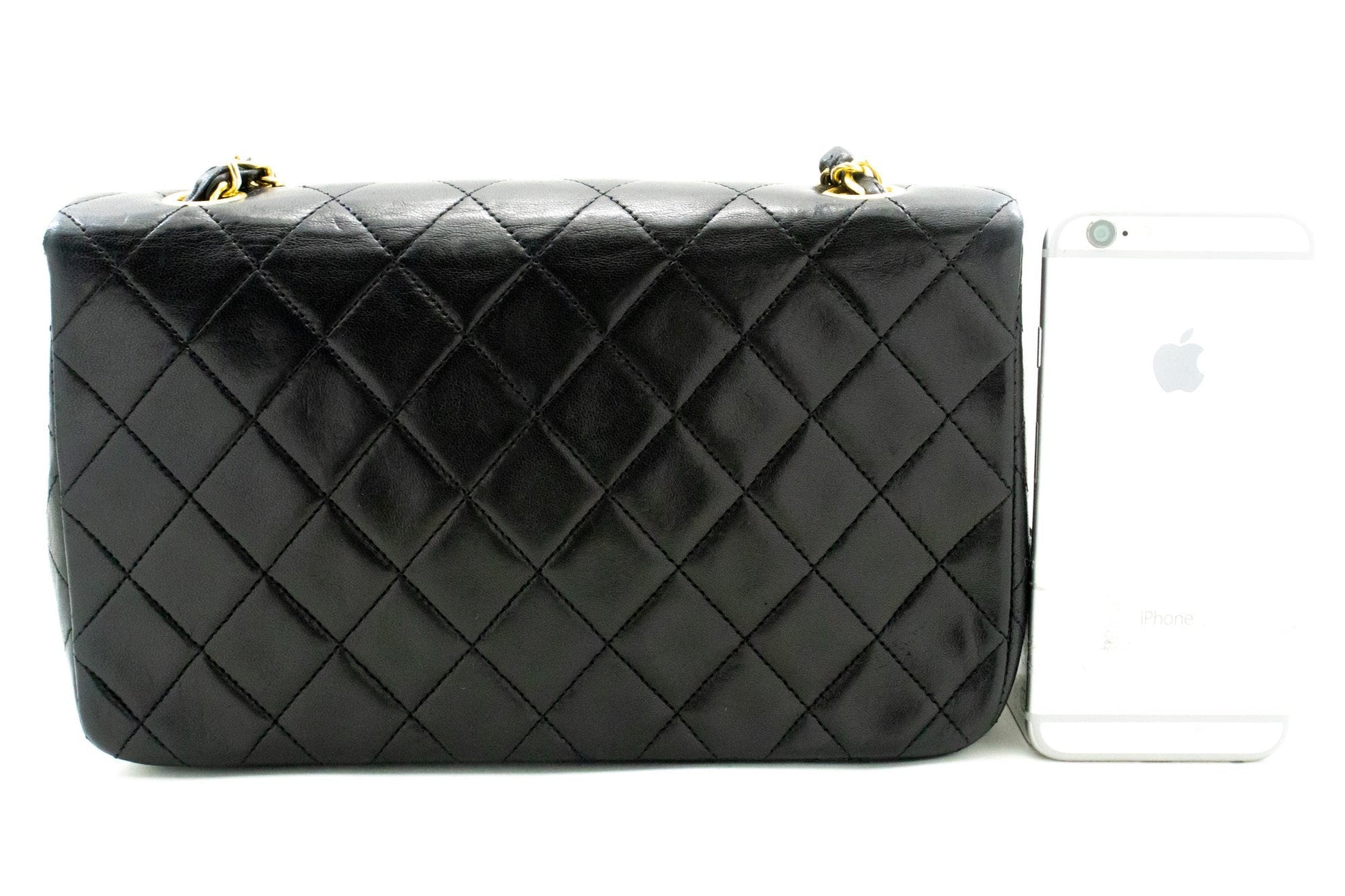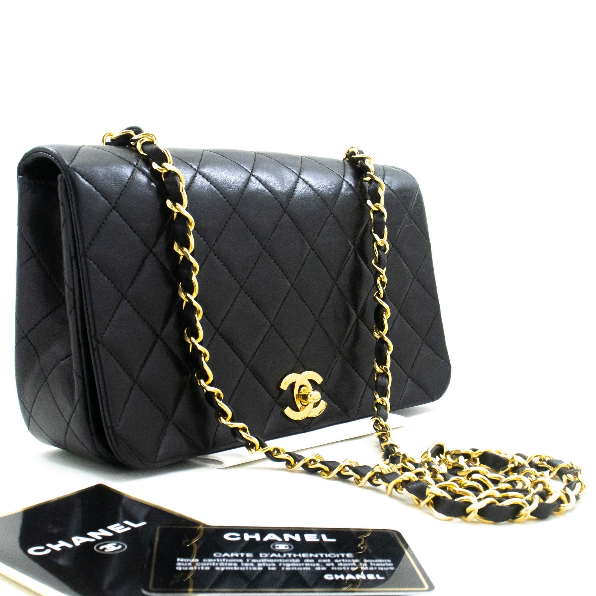 An CHANEL Full New Chain Shoulder Bag Black Quilted made of black Lambskin Leather.
