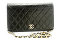 An CHANEL Full New Chain Shoulder Bag Clutch Black Quilted made of black Lambskin.