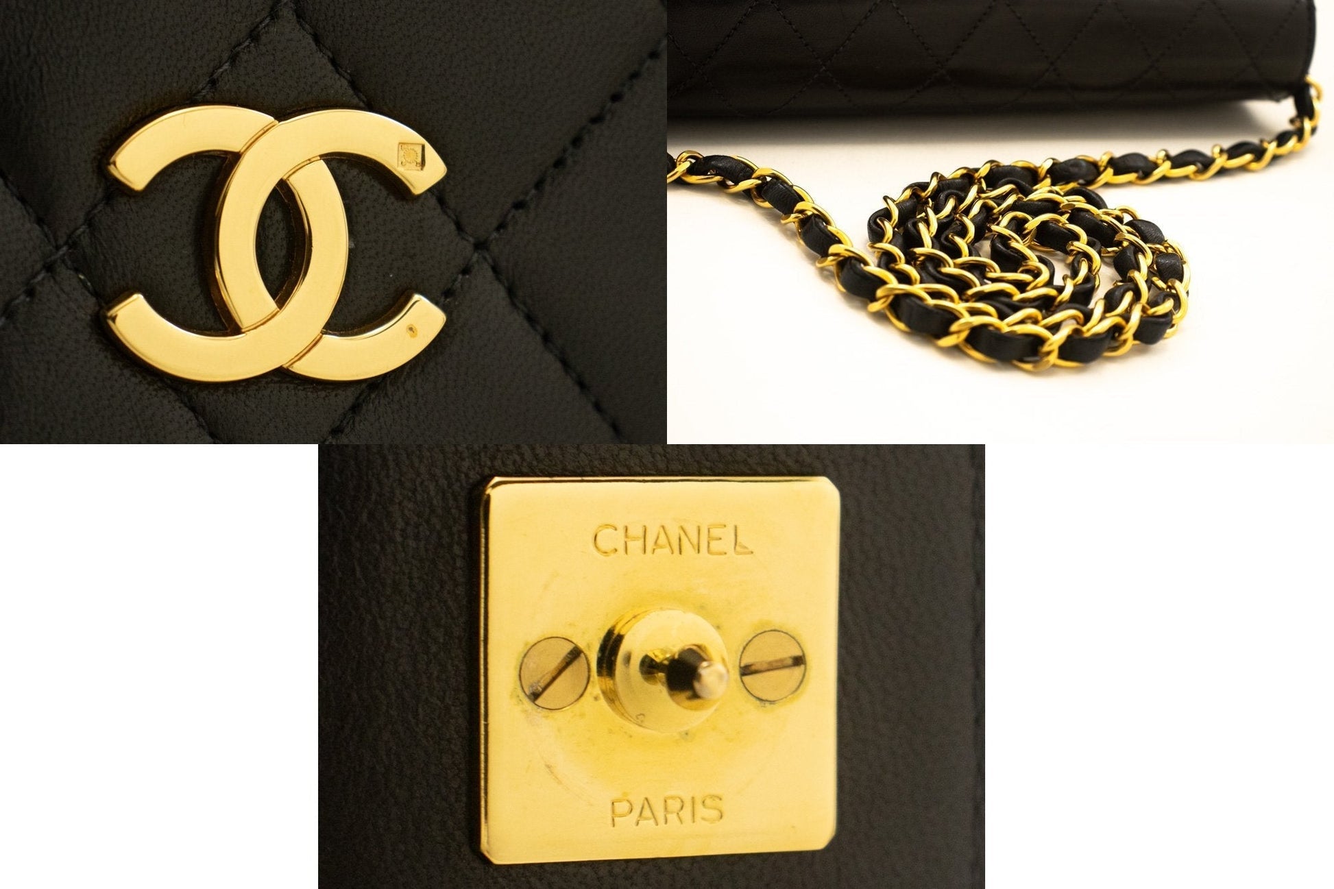 Top Quality Chanel Full New Chain Shoulder Bag Clutch Black Quilted Lambskin