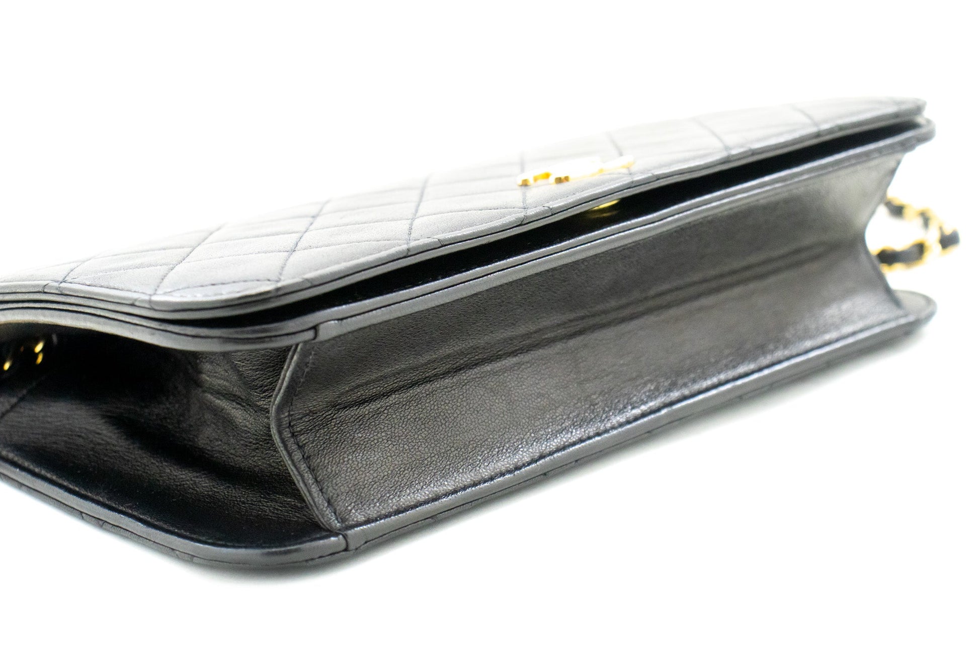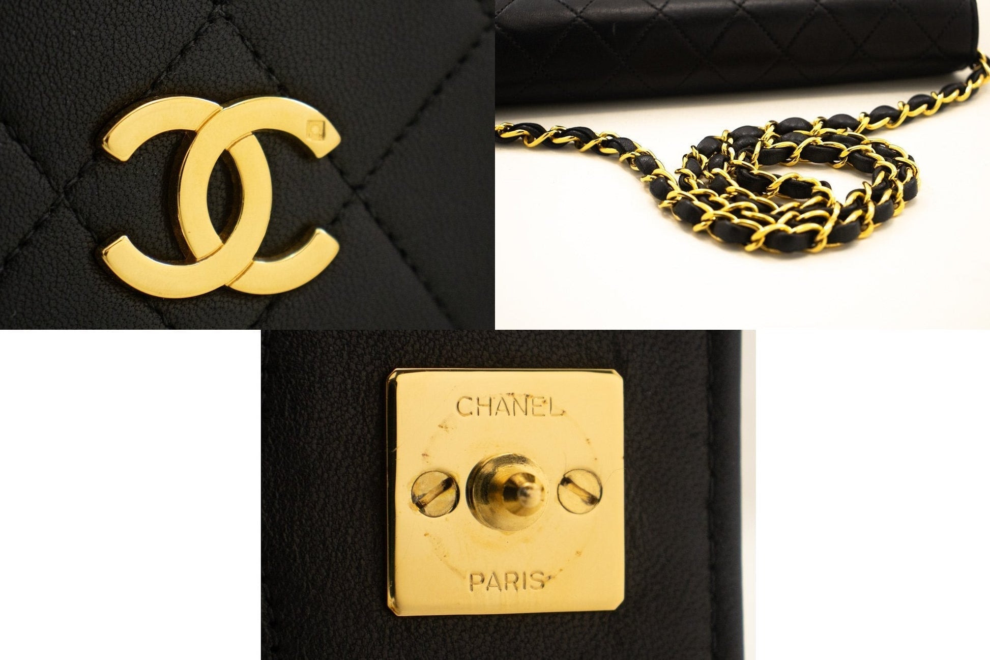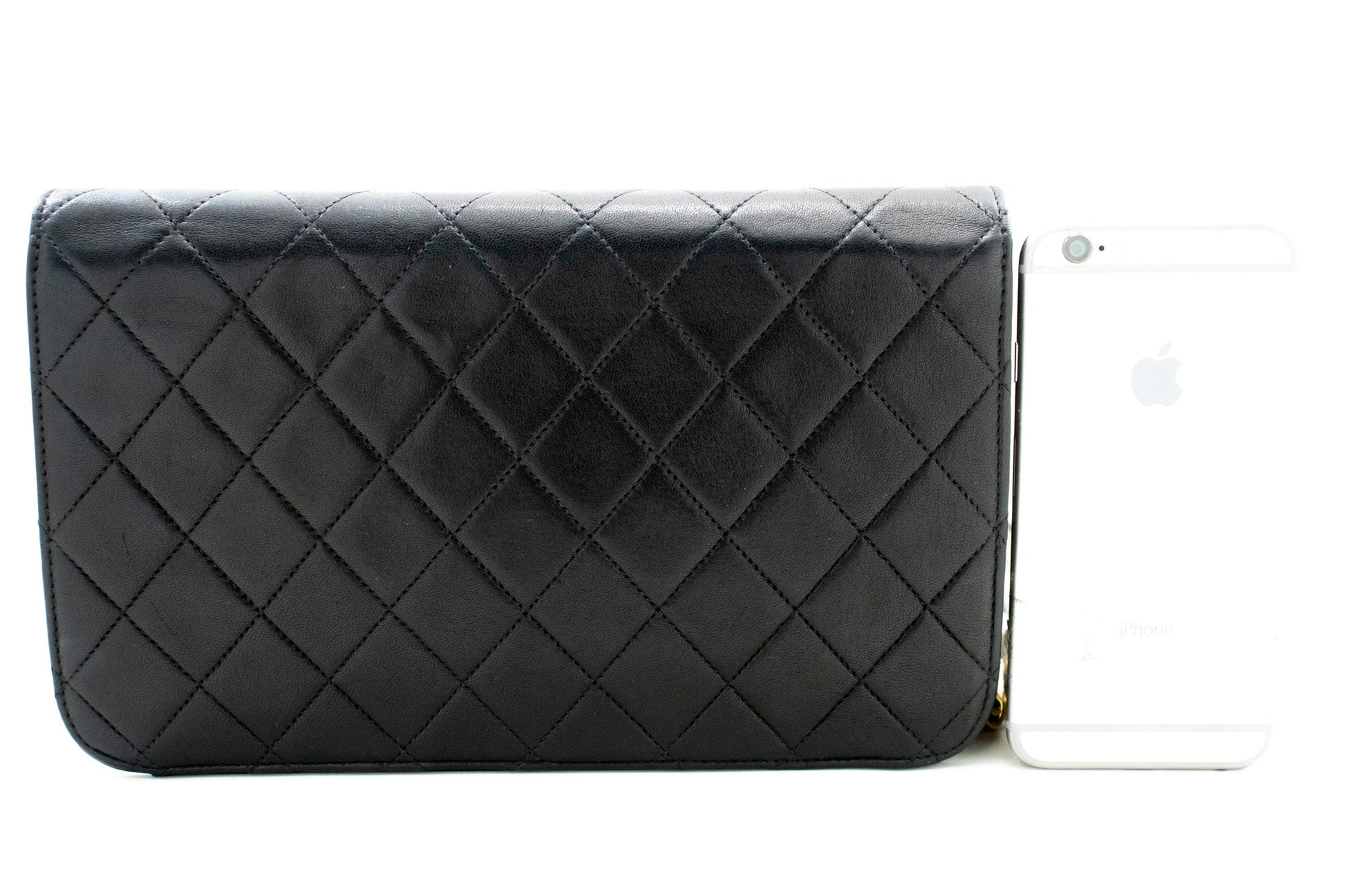 An CHANEL Full New Chain Shoulder Bag Clutch Black Quilted made of black Lambskin.