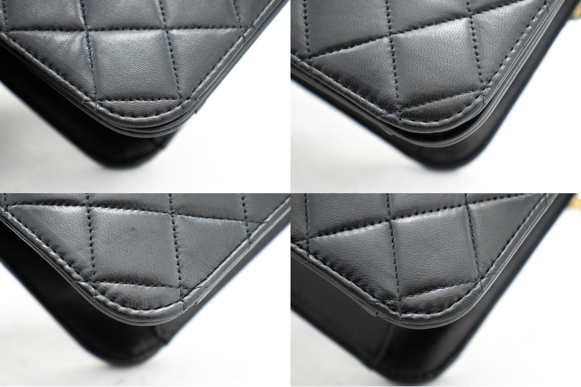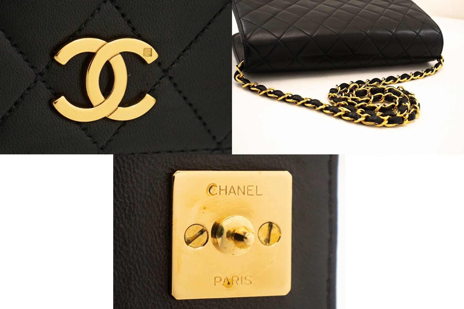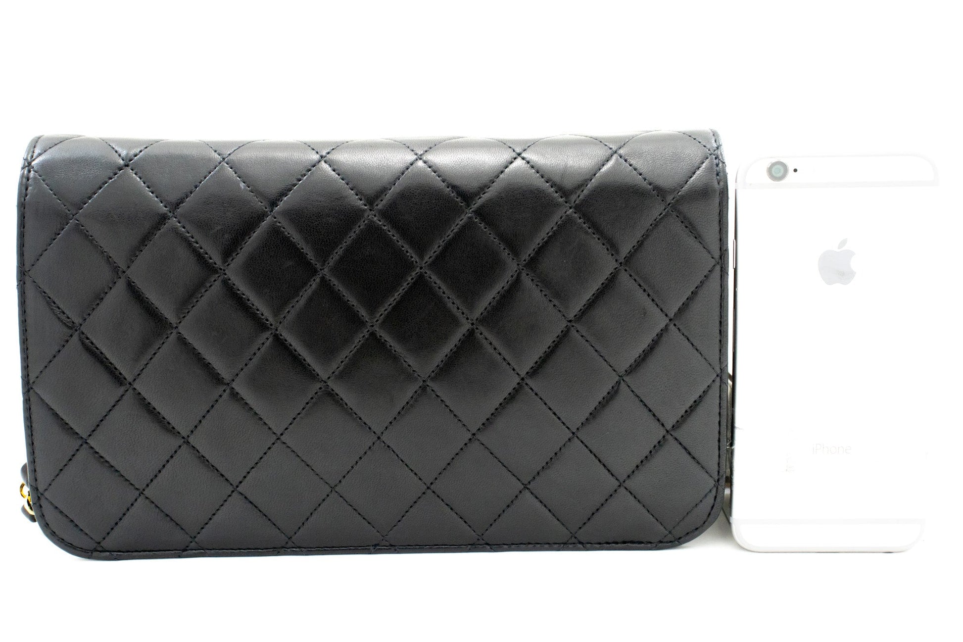 An CHANEL Full New Chain Shoulder Bag Clutch Black Quilted made of black Lambskin.