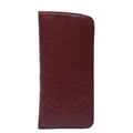 CHANEL Glasses Case Caviar Skin Bordeaux CC Auth bs16462