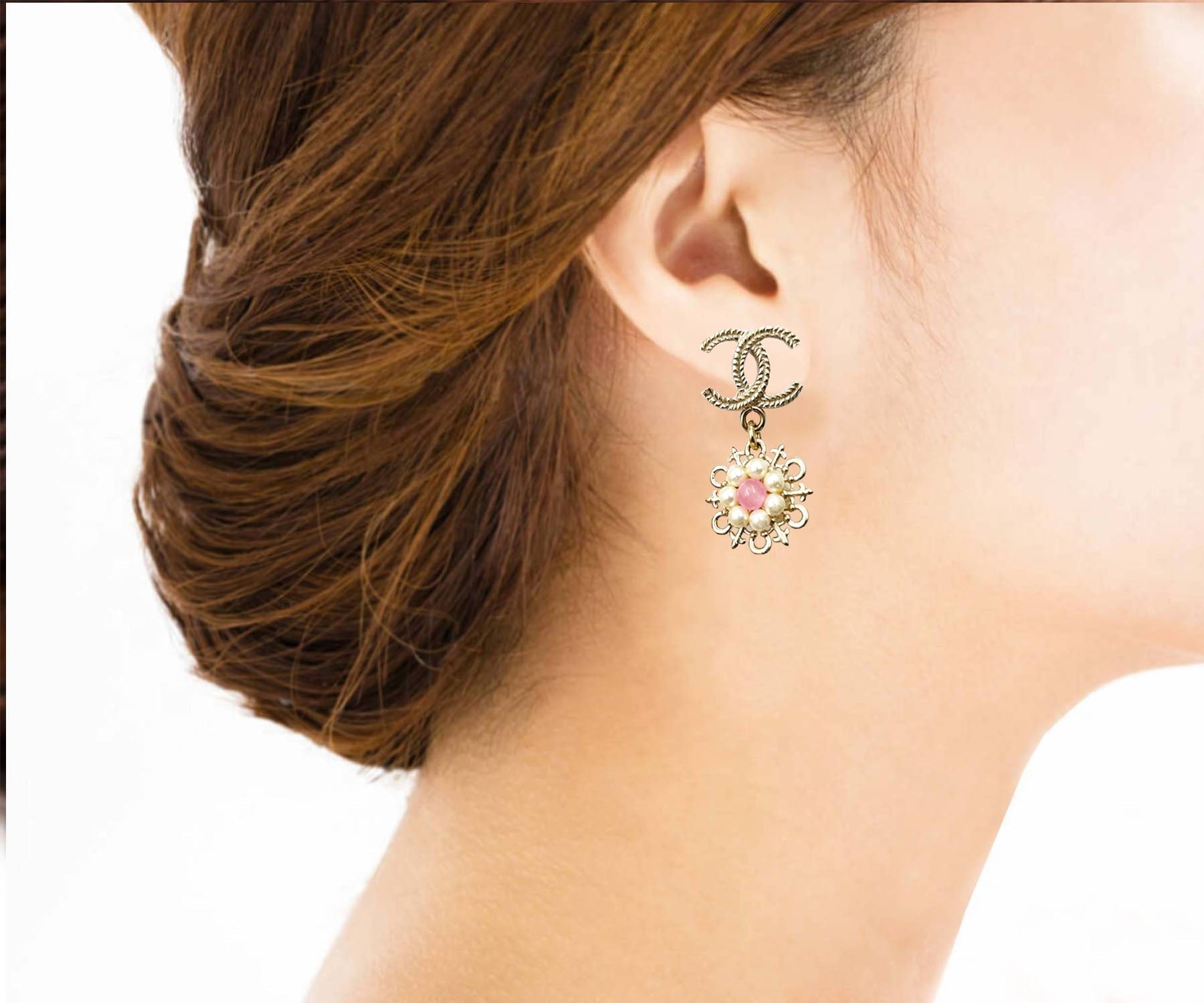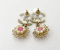 Top Quality Chanel Gold CC Pink Bead Pearl Wheel Piercing Earrings