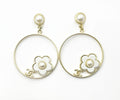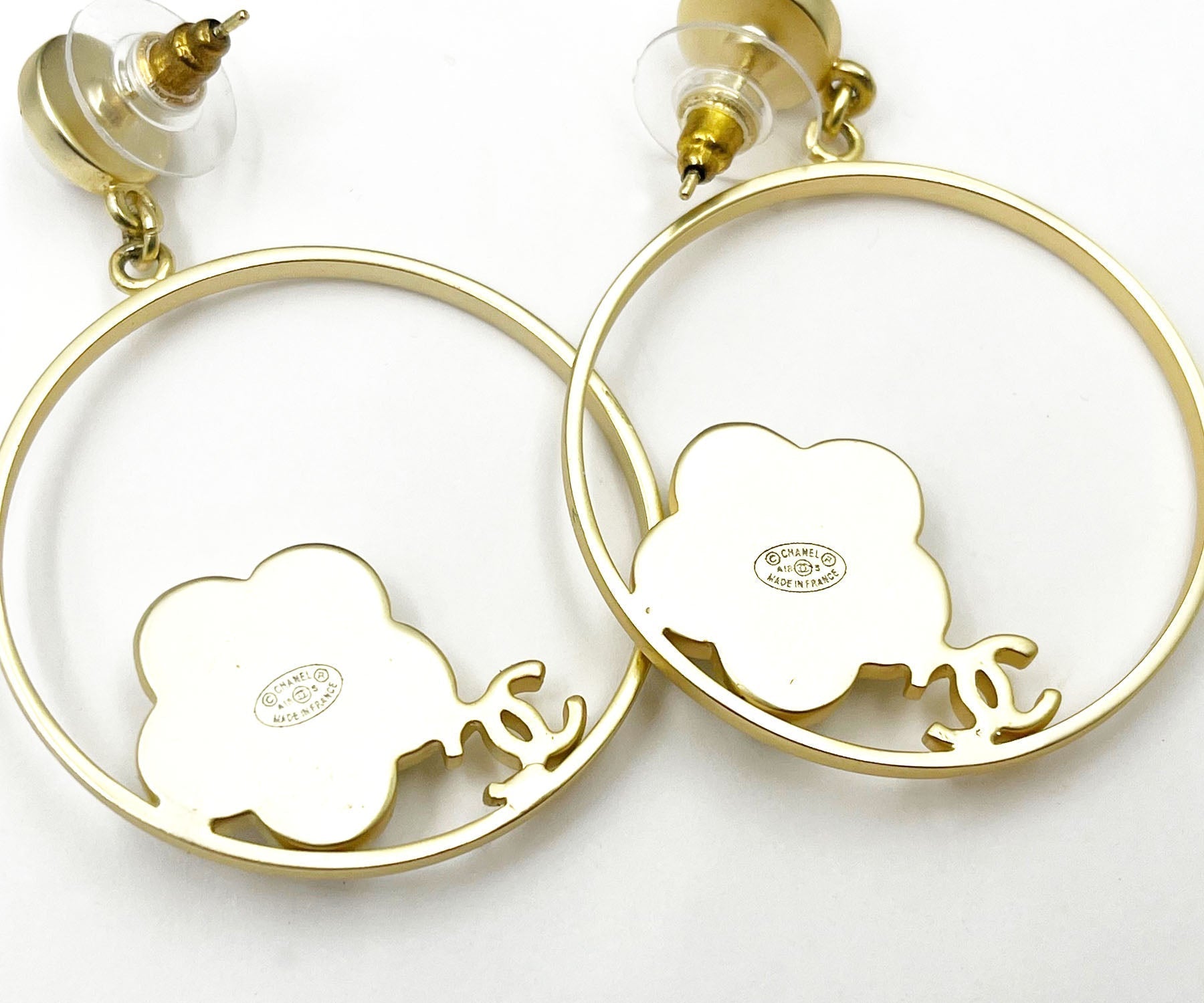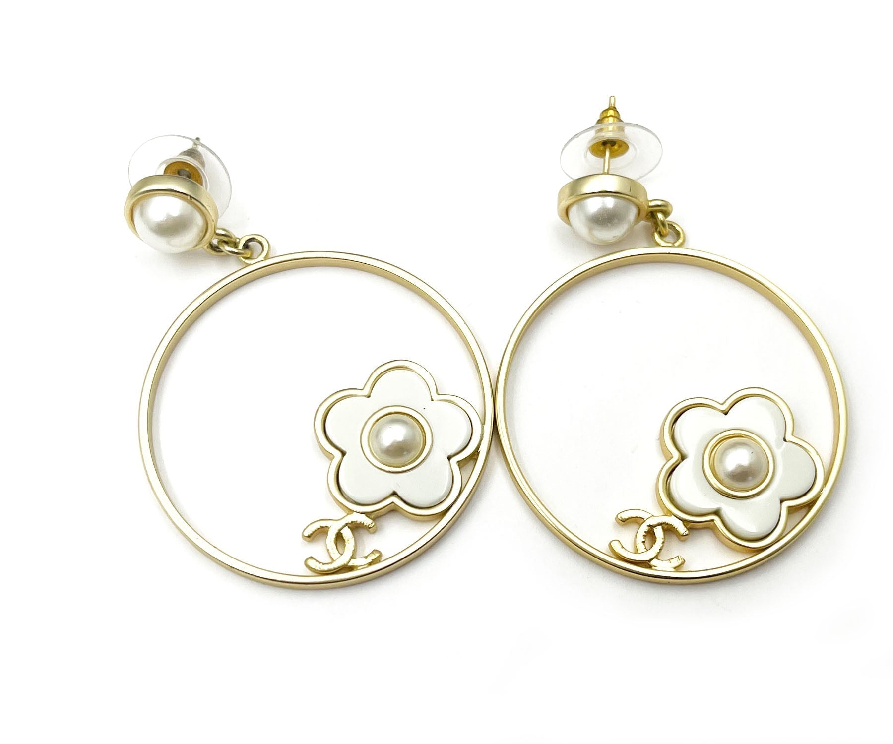 Chanel Gold CC White Daisy Round Ring Large Piercing Earrings.