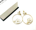 Top Quality Chanel Gold CC White Daisy Round Ring Large Piercing Earrings