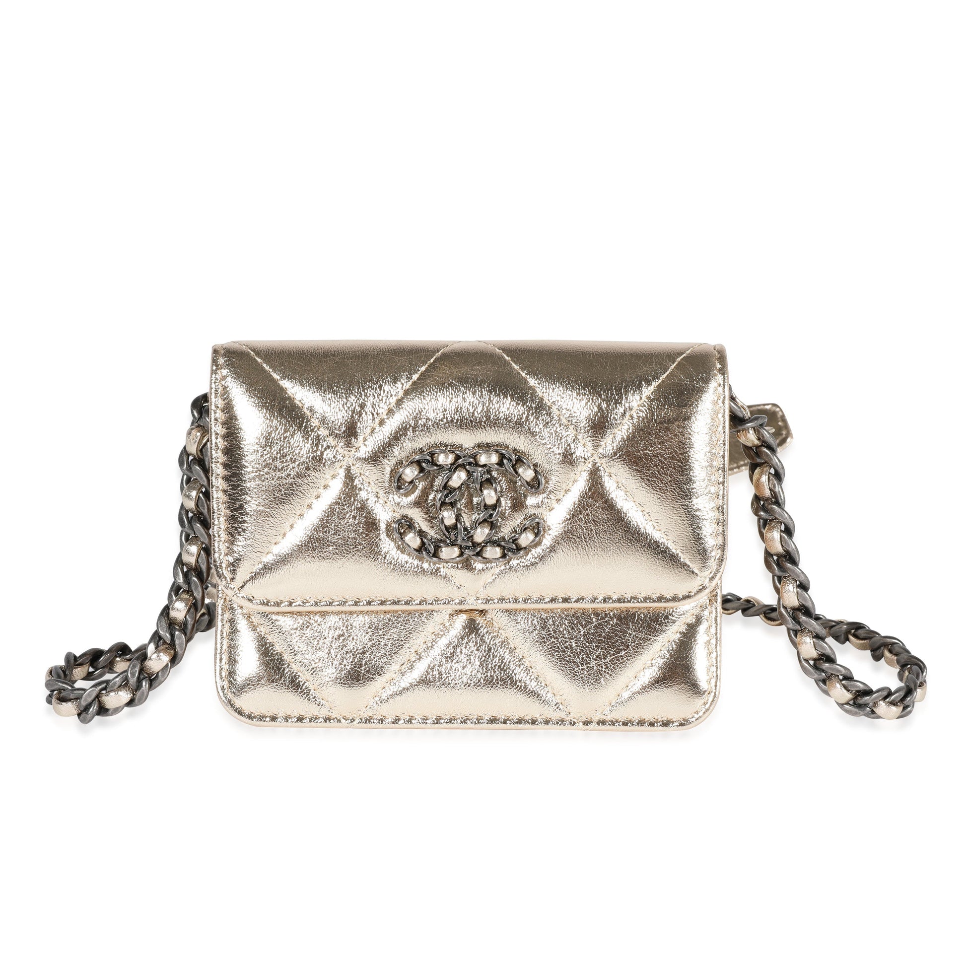 Model: Metallic Gold Lambskin Quilted Chanel 19 New Coin Purse With Chain