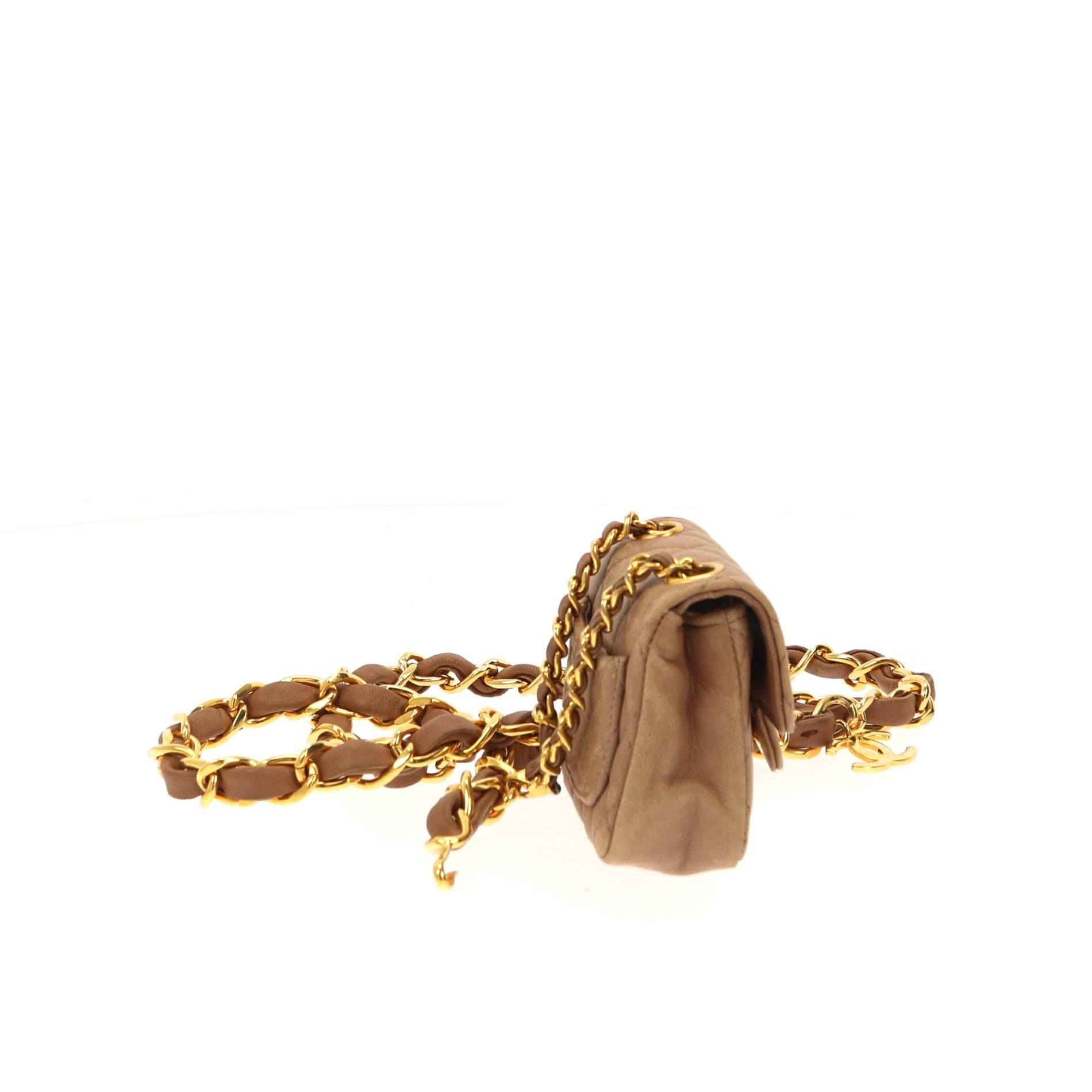 Top Quality Chanel golden Chain Belt with little bag in brown leather
