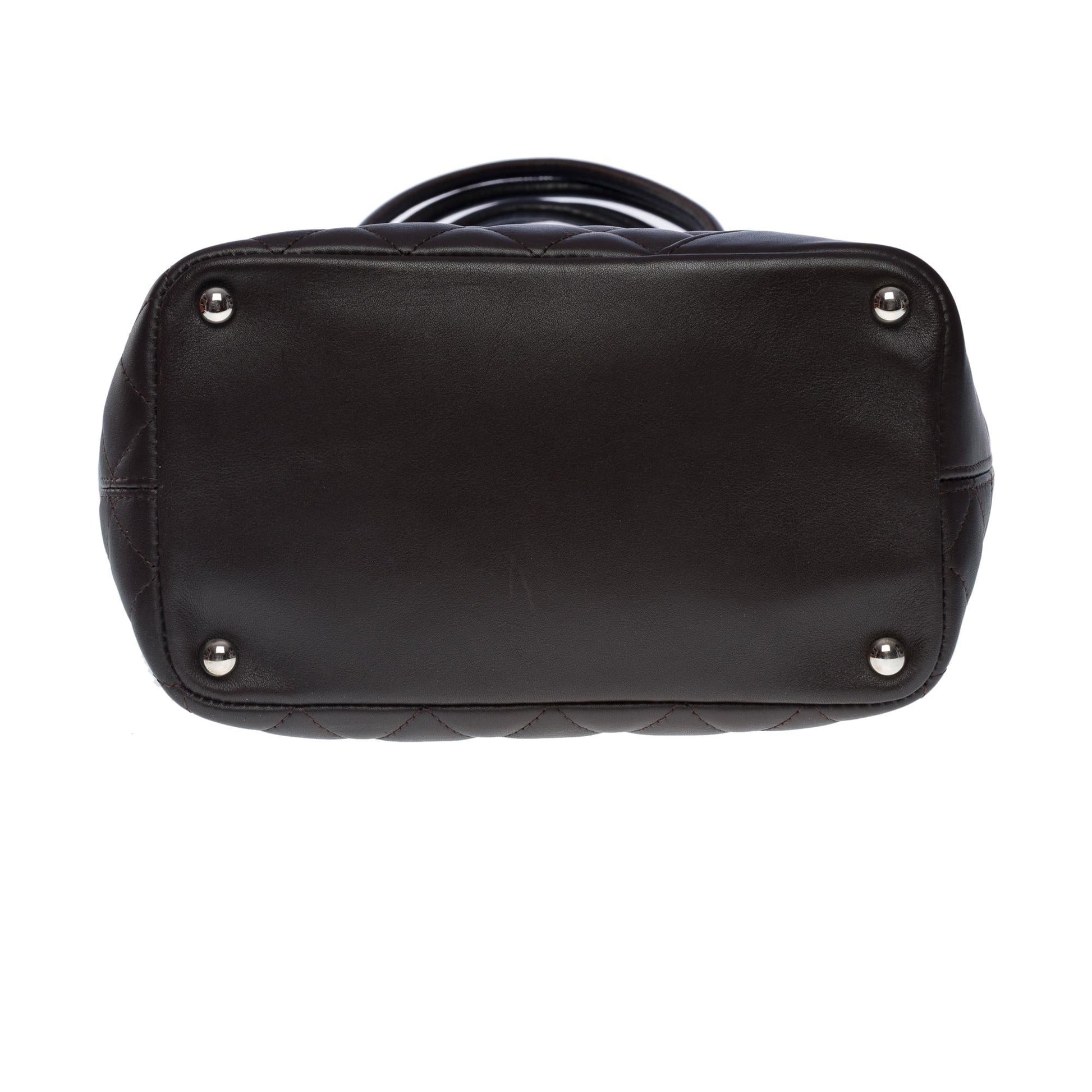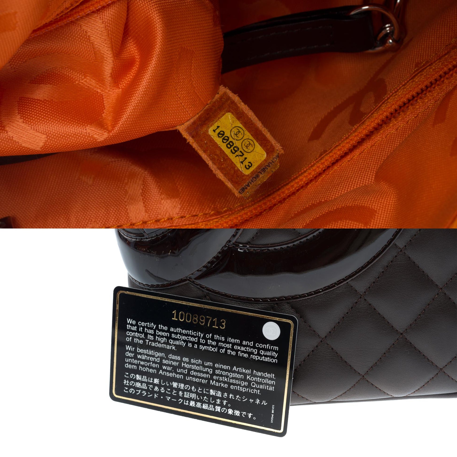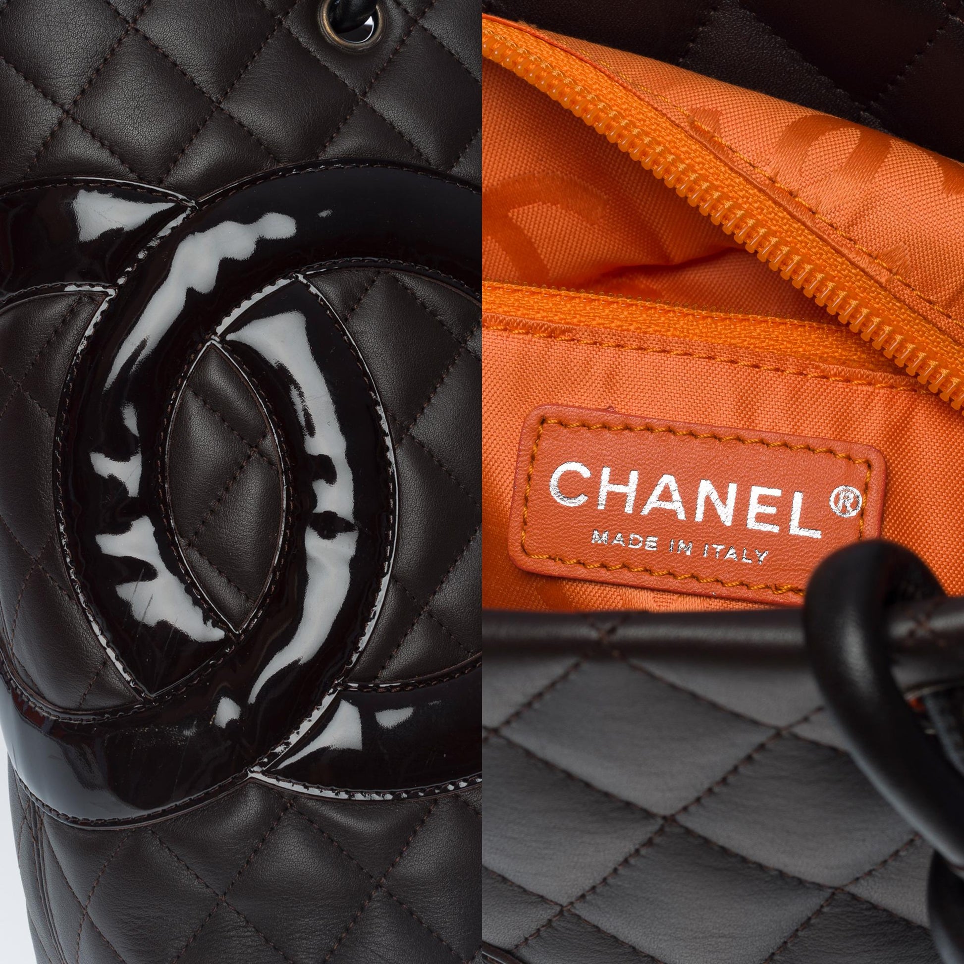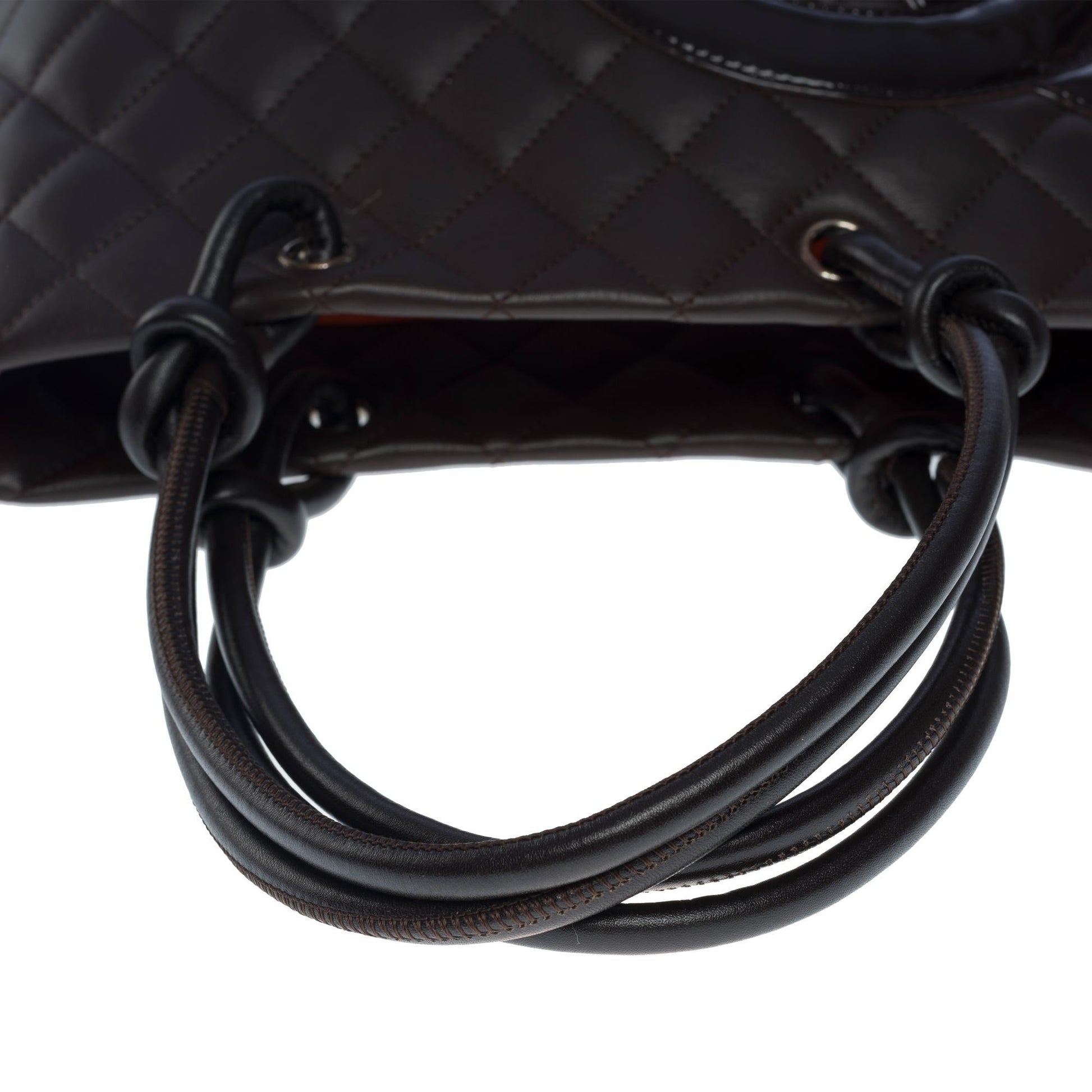 Stunning Chanel Cambon Tote bag in brown quilted lambskin leather, silver metal hardware, Double brown leather handle for hand or shoulder carry Zipper CC brand orange fabric inner lining, two zip pockets, two pen slots, one tie Signature: "ChanelMade in Italy" Date: 2005-2006 Dimensions: 20 x 25 x 11 cm (7.8 x 9.8 x 4.5 in.) Handle length: 20 cm (7.8 in.) Reference: 101138 Packaging: Hologram: Yes : Yes + booklet Dust bag: No Box: No General condition: 7/10 In New condition despite marks of use on the leather and hardware (small oxidation of eyelets) Option in addition: by a judicial expert at the Appeal Court of Paris
