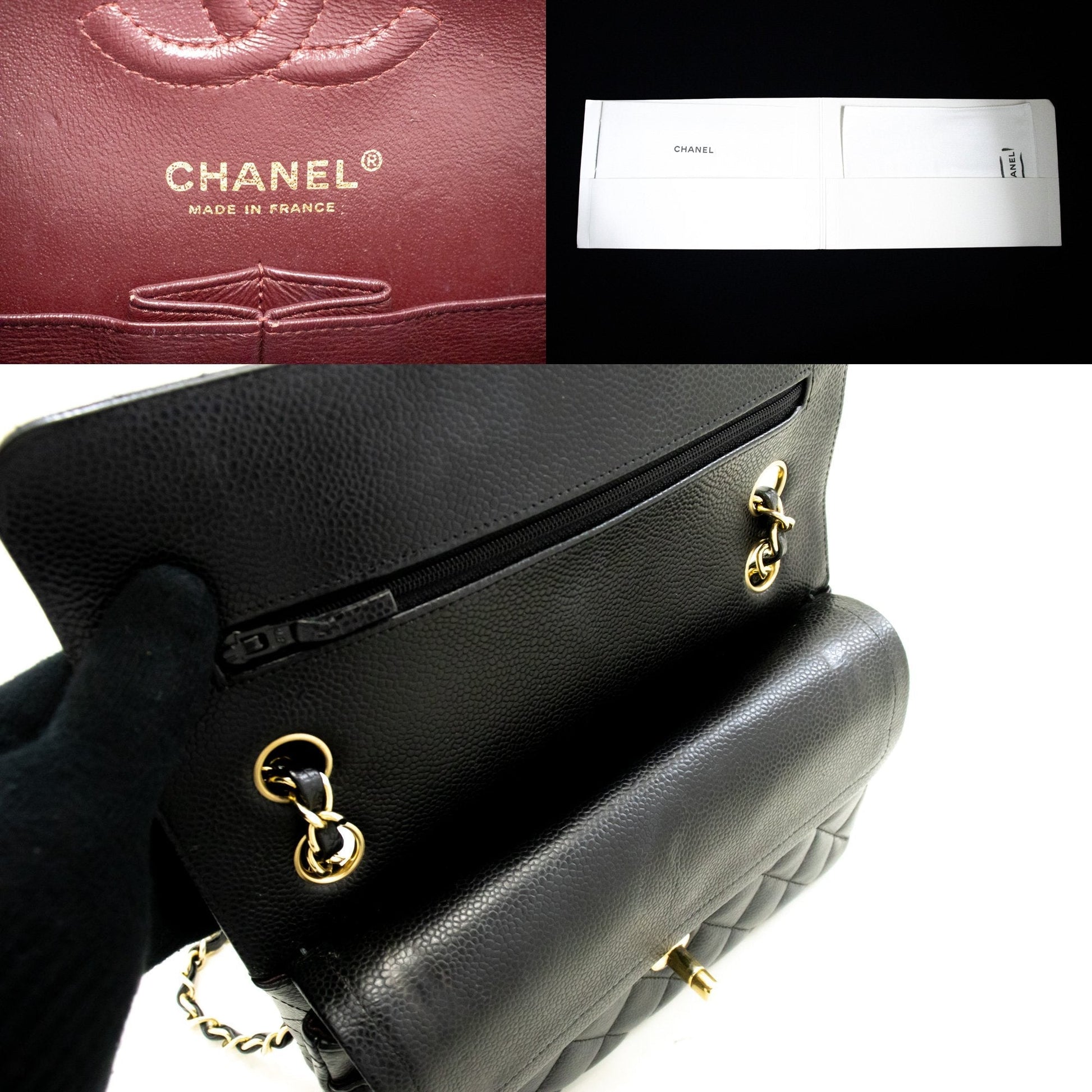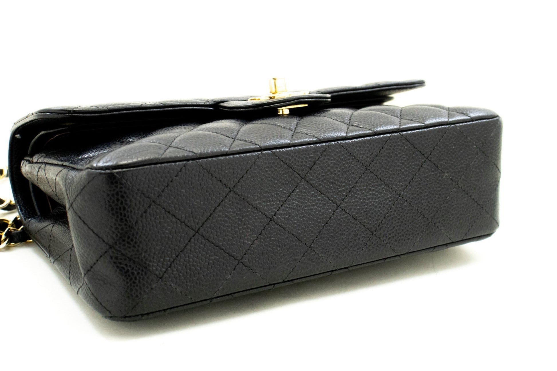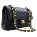 An CHANEL Grained Calfskin Double New 9" Chain Shoulder Bag Black.