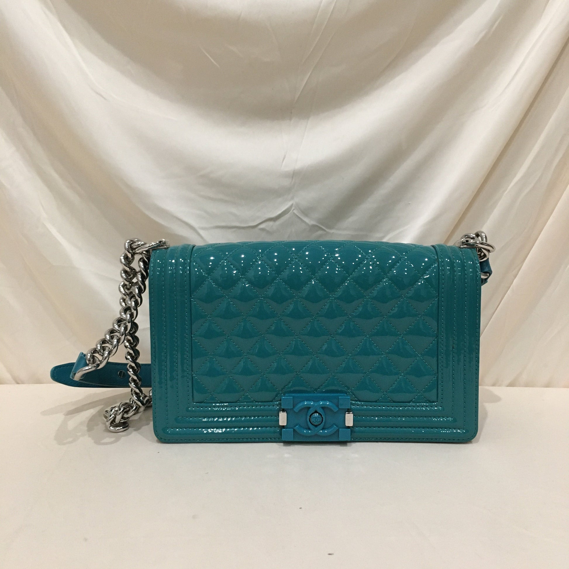 Top Quality Chanel Green Patent Old Medium Boy New Shoulder Bag Sku# 76385