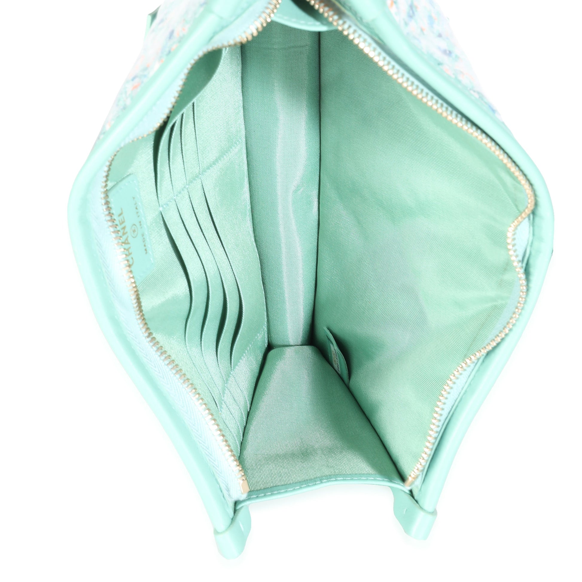 Listing Title: Chanel Green Tweed PVC Lambskin Chanel Logo Wristlet Pouch