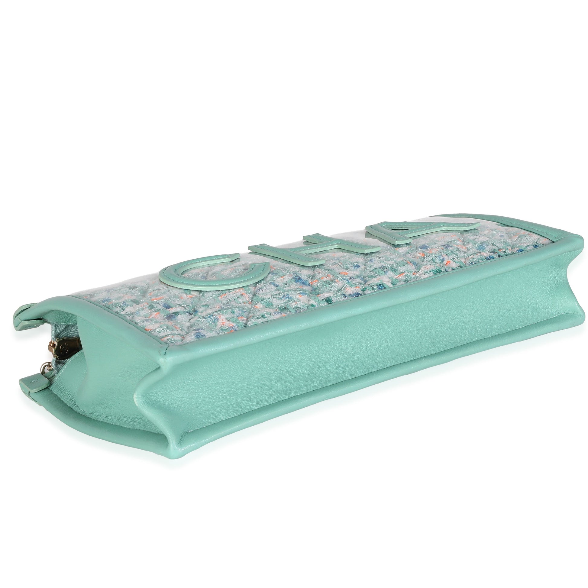 Top Quality Chanel Green Tweed PVC Lambskin Logo Wristlet Pouch