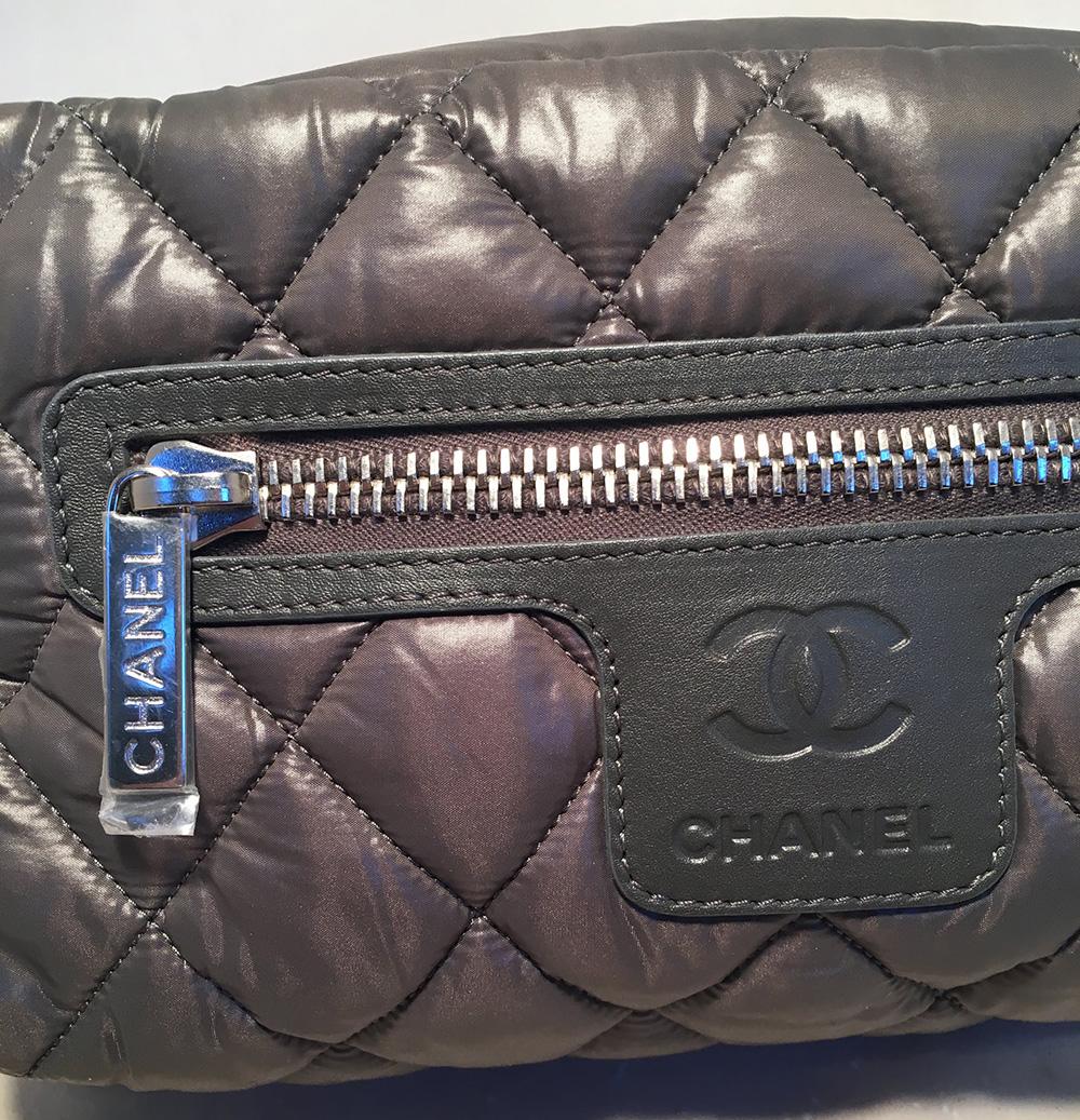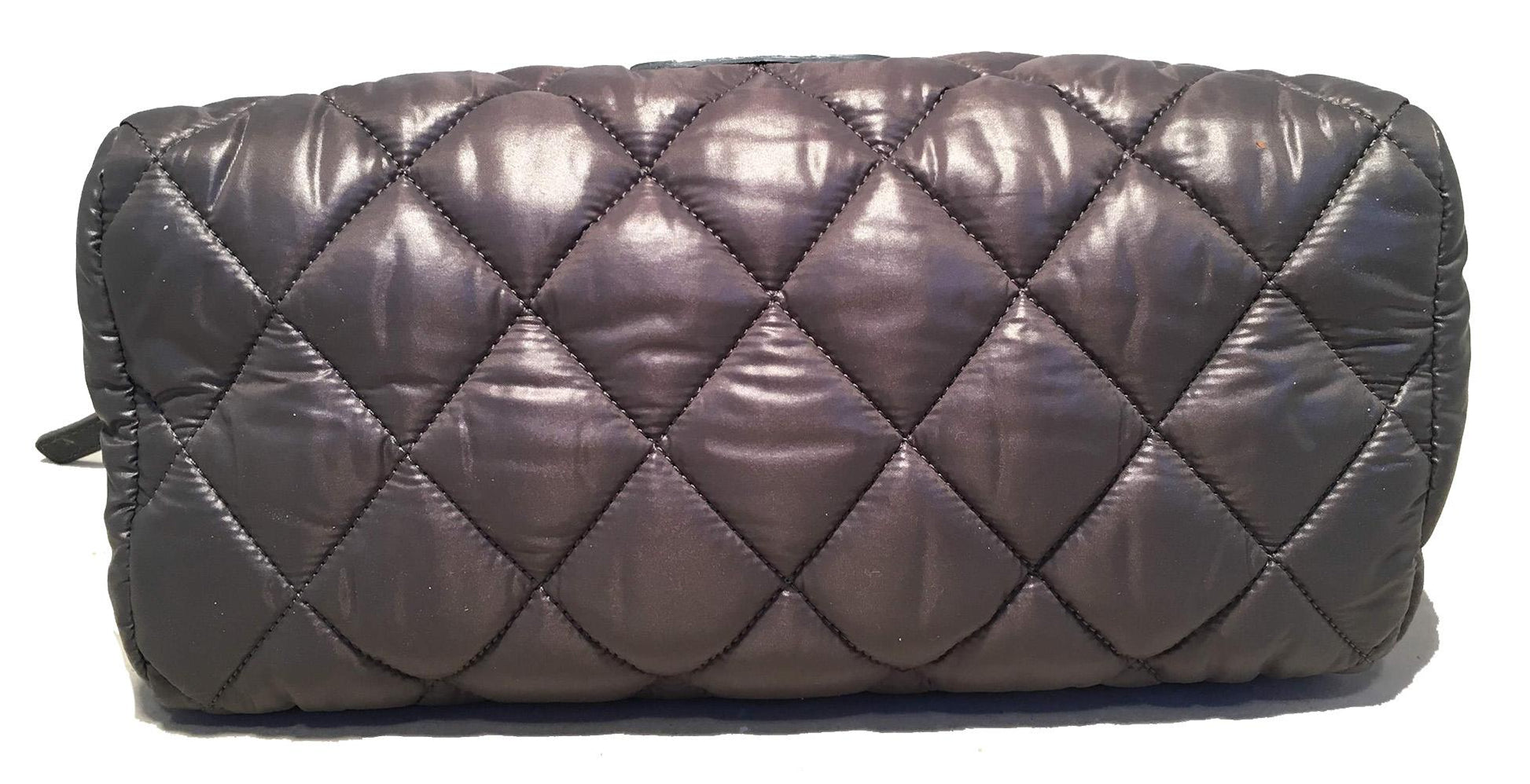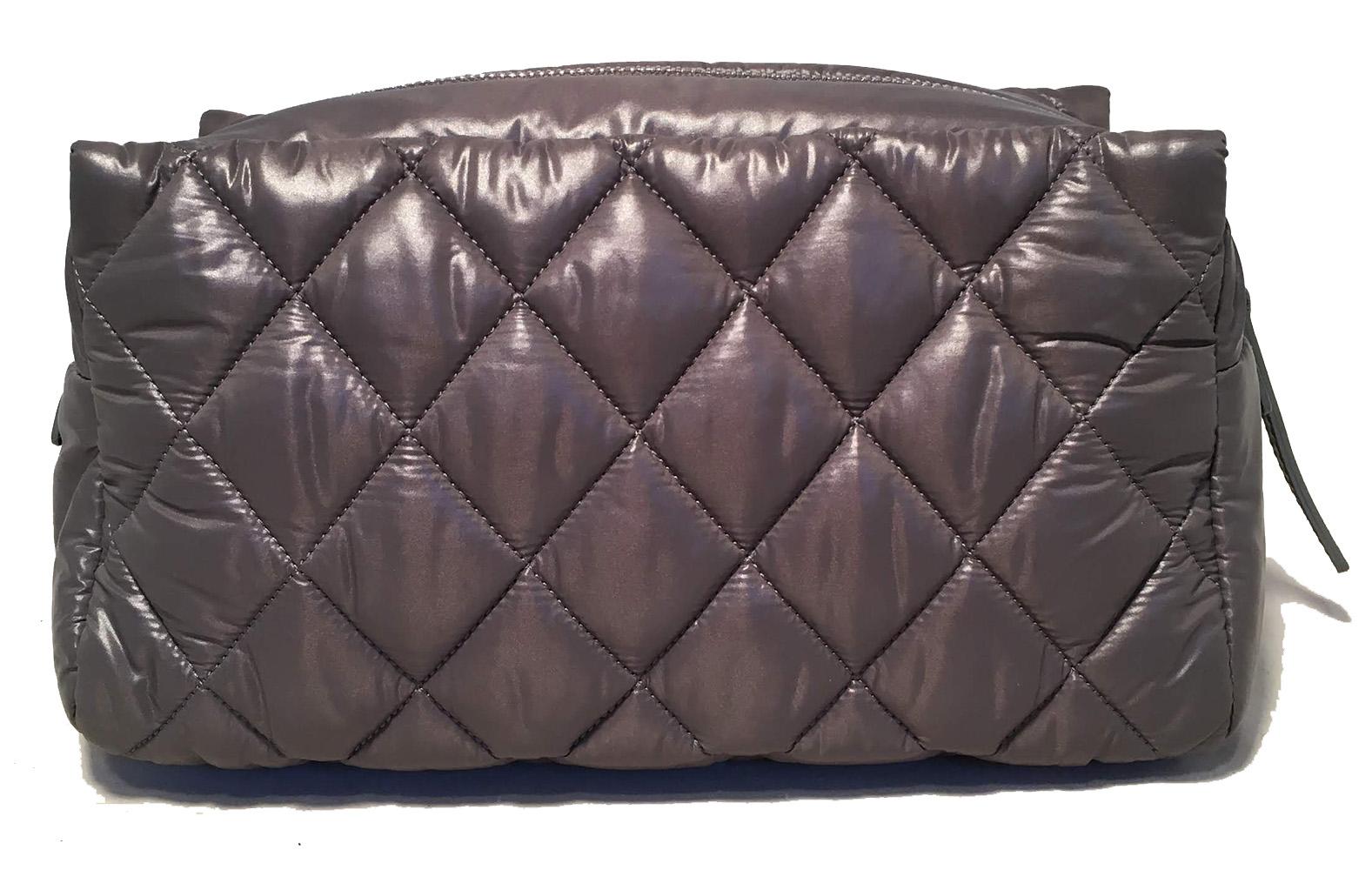 Chanel Grey Quilted Nylon Travel Accessories Cosmetic Pouch in New condition.