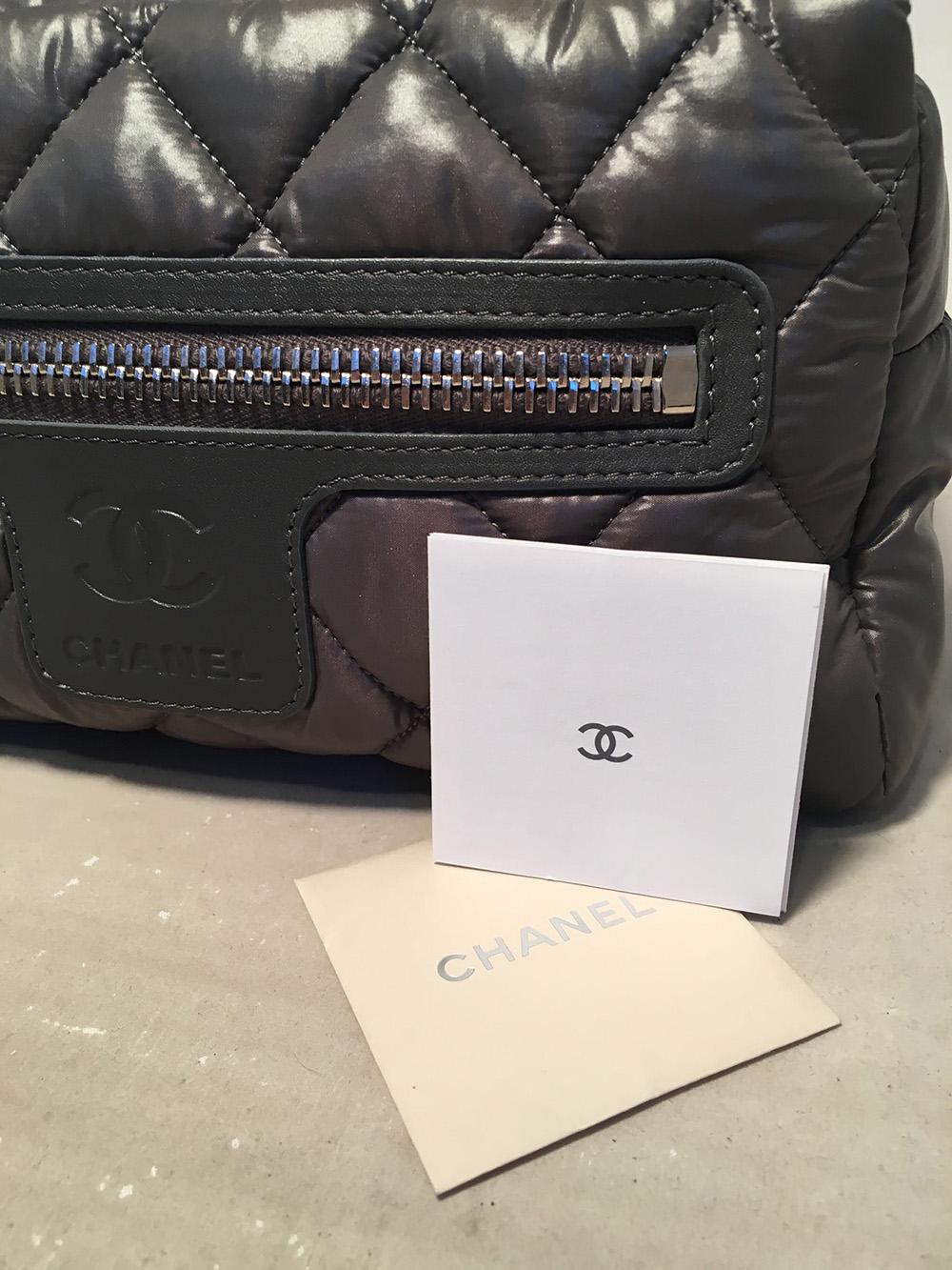Top Quality Chanel Grey Quilted Nylon Travel Accessories Cosmetic Pouch