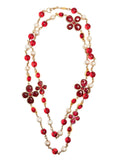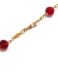 Alternating with elegant faux-pearl detailing, red-hued glass beads add a vivid element to the timeless design.