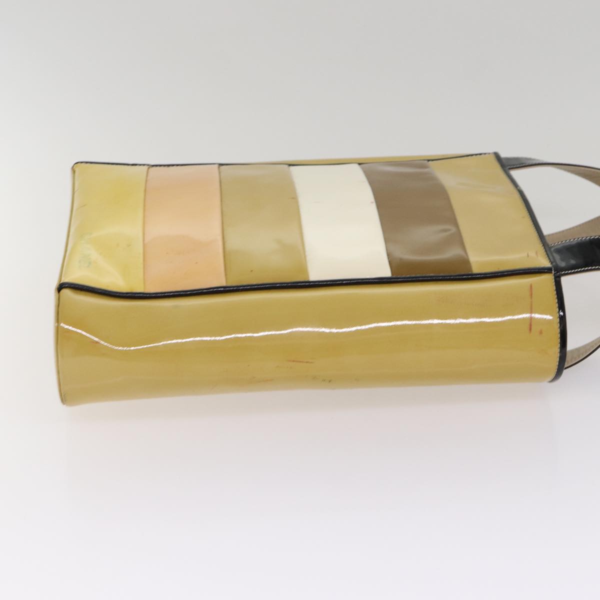 CHANEL Hand Bag Enamel Beige Gold CC Auth bs17154
