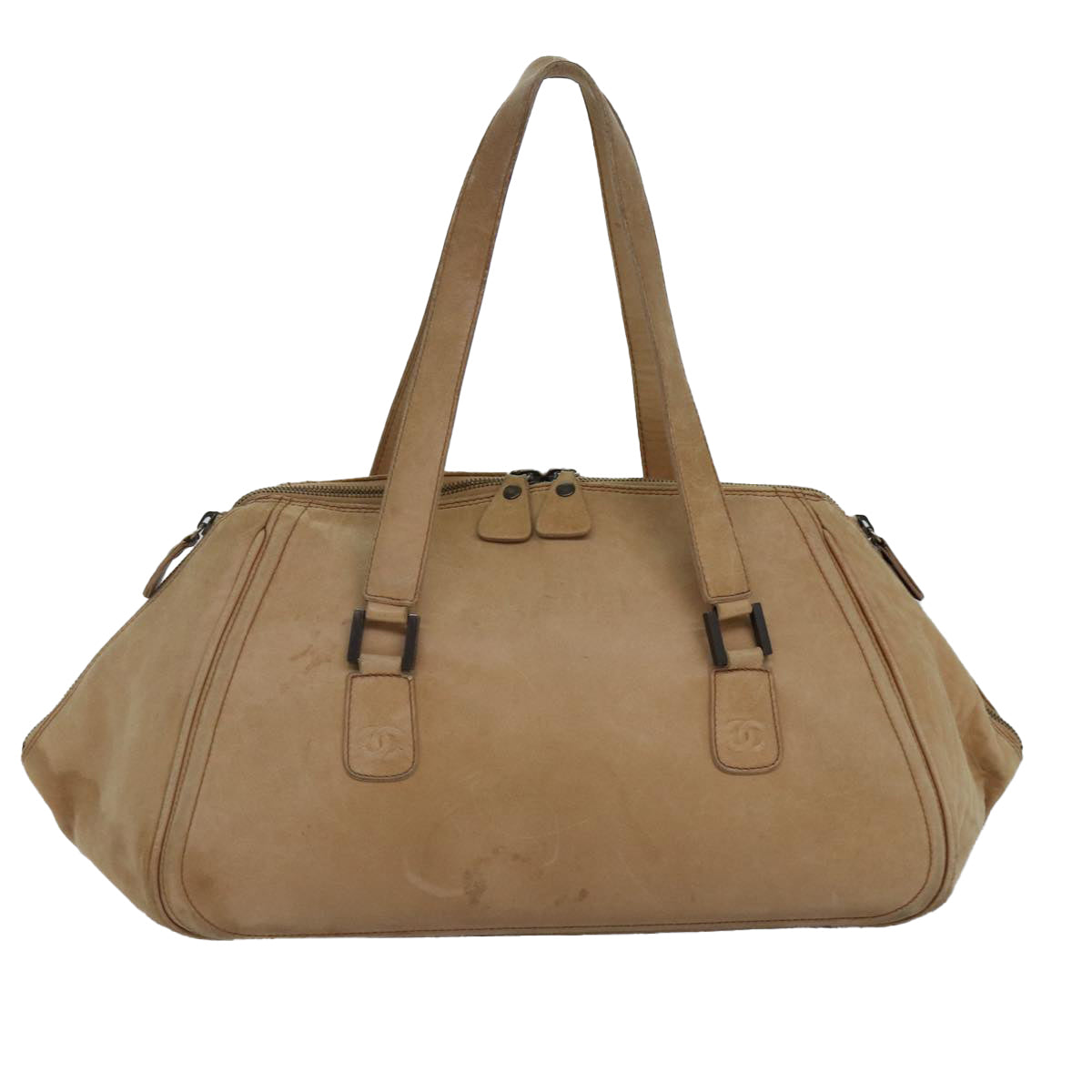 CHANEL Hand Bag Leather Beige CC Auth bs17225