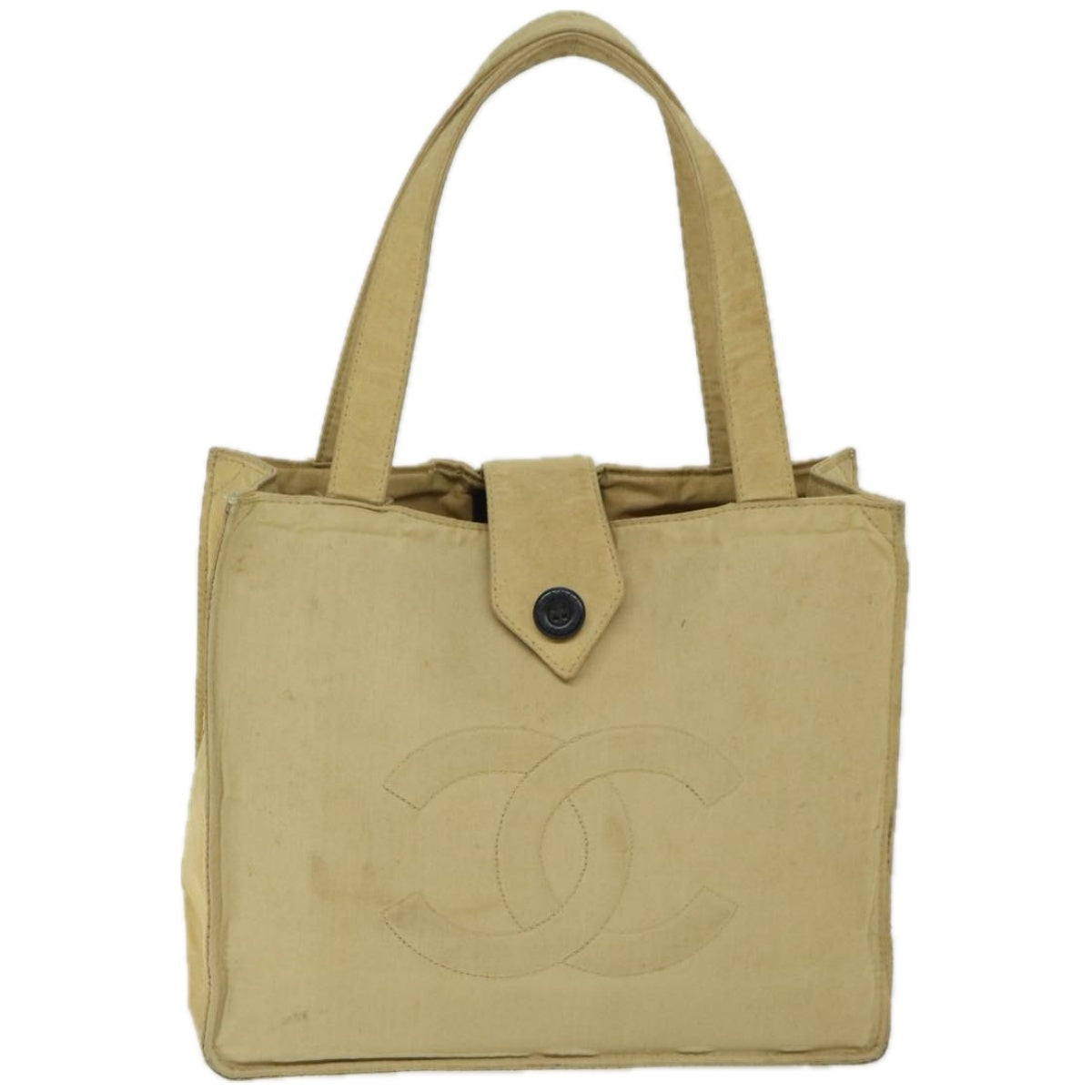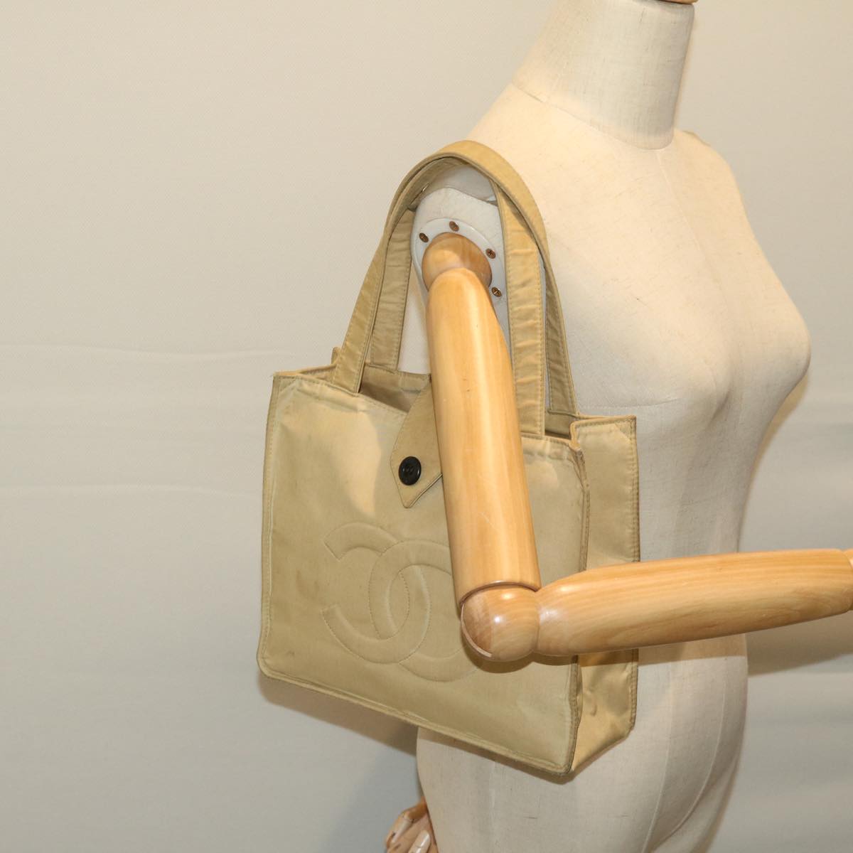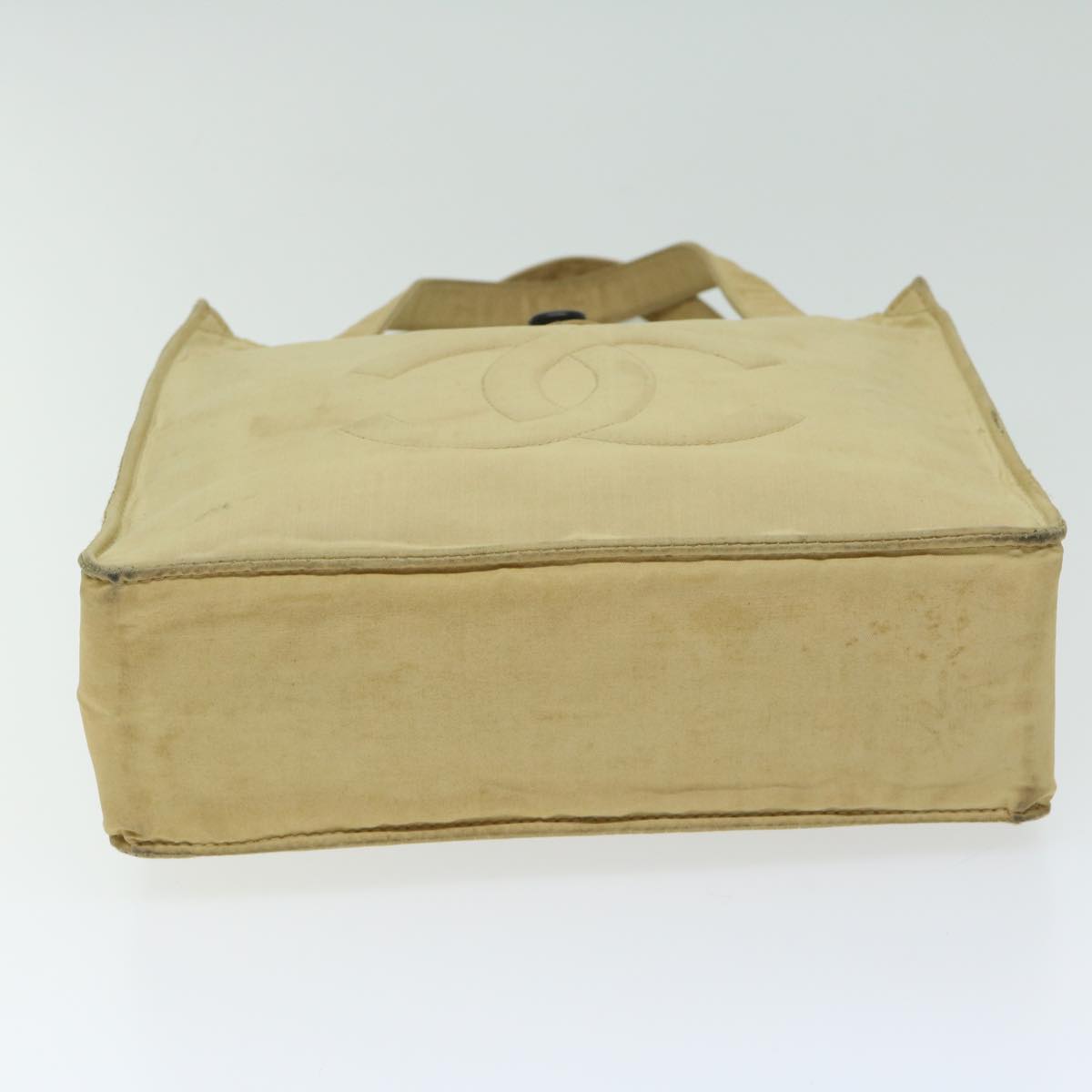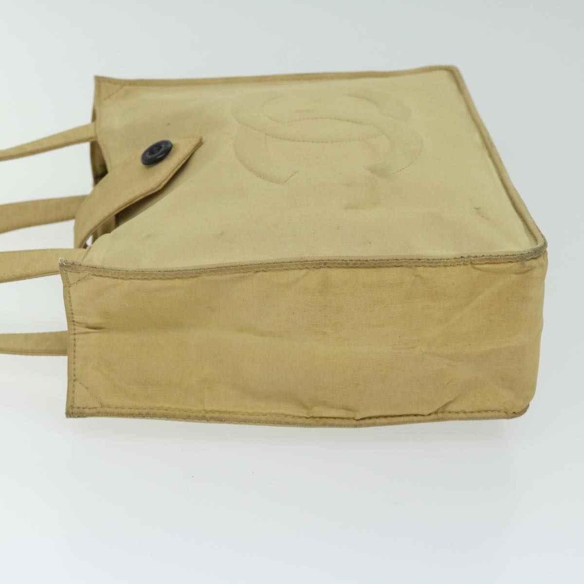 CHANEL Hand Bag Nylon Beige CC Auth bs12434