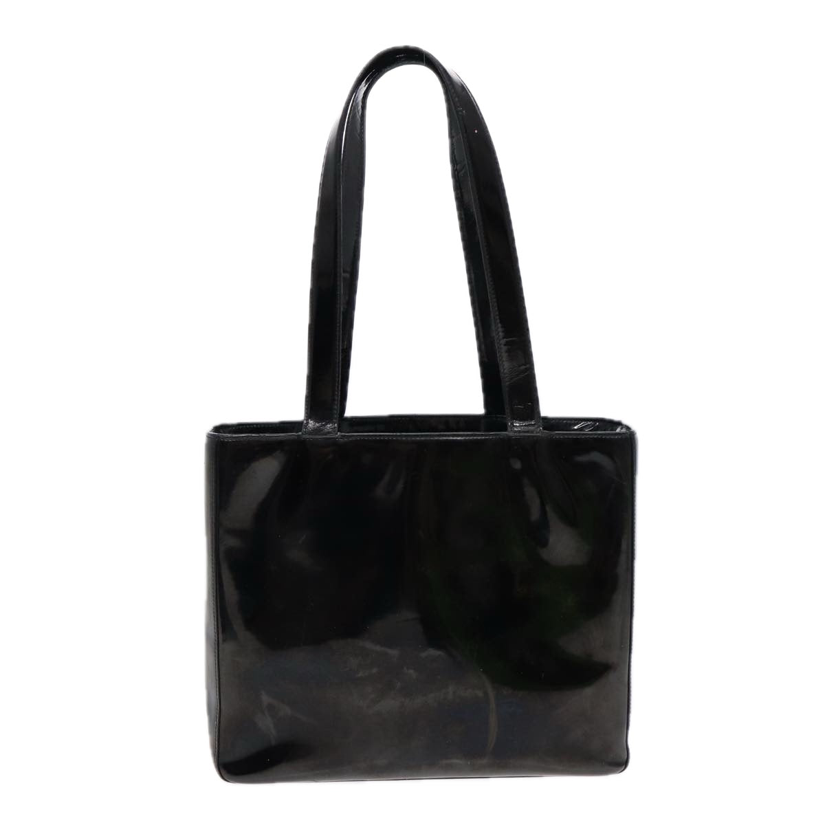CHANEL Hand Bag Patent leather Black Gold CC Auth bs17486