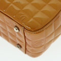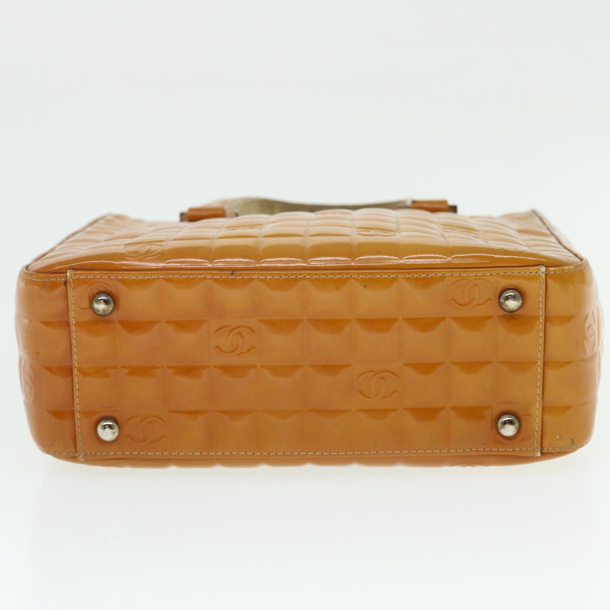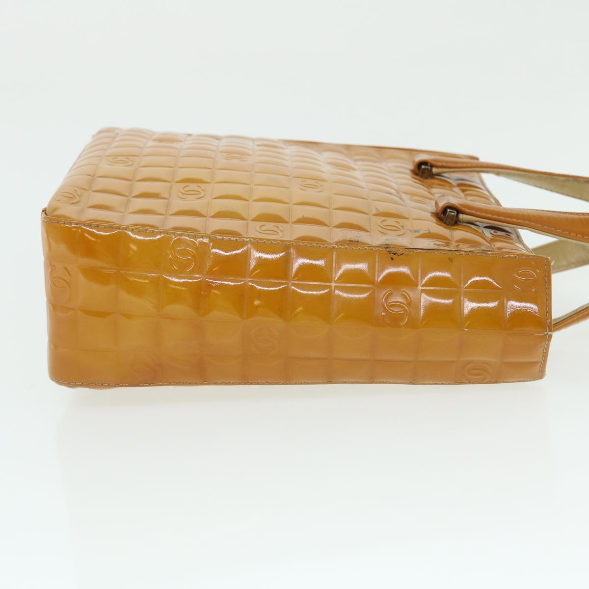 CHANEL Hand Bag Patent leather Yellow CC Auth bs7609