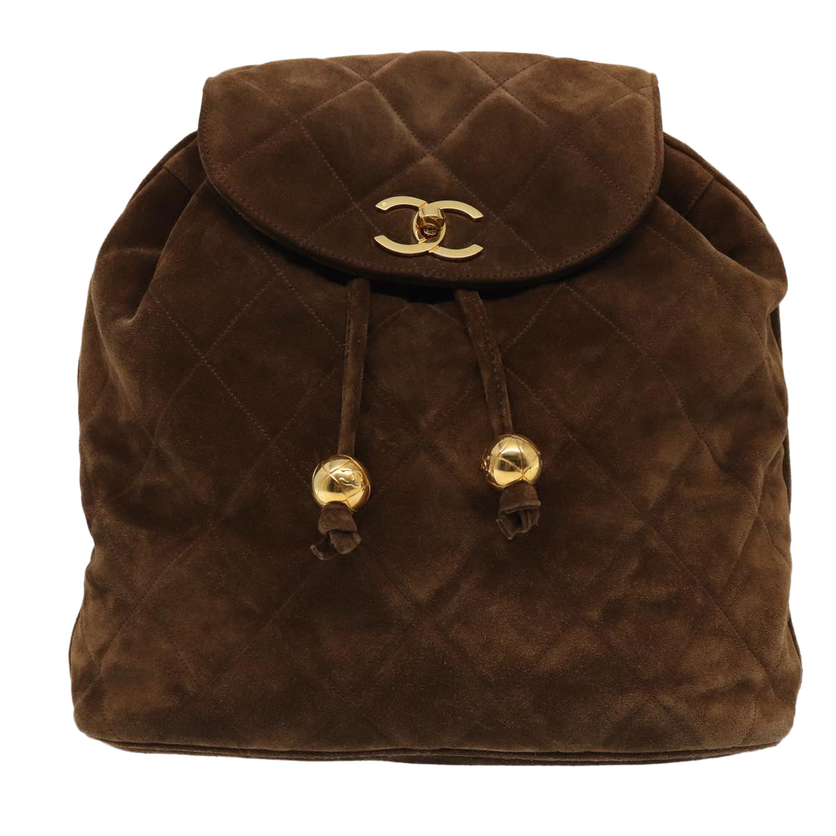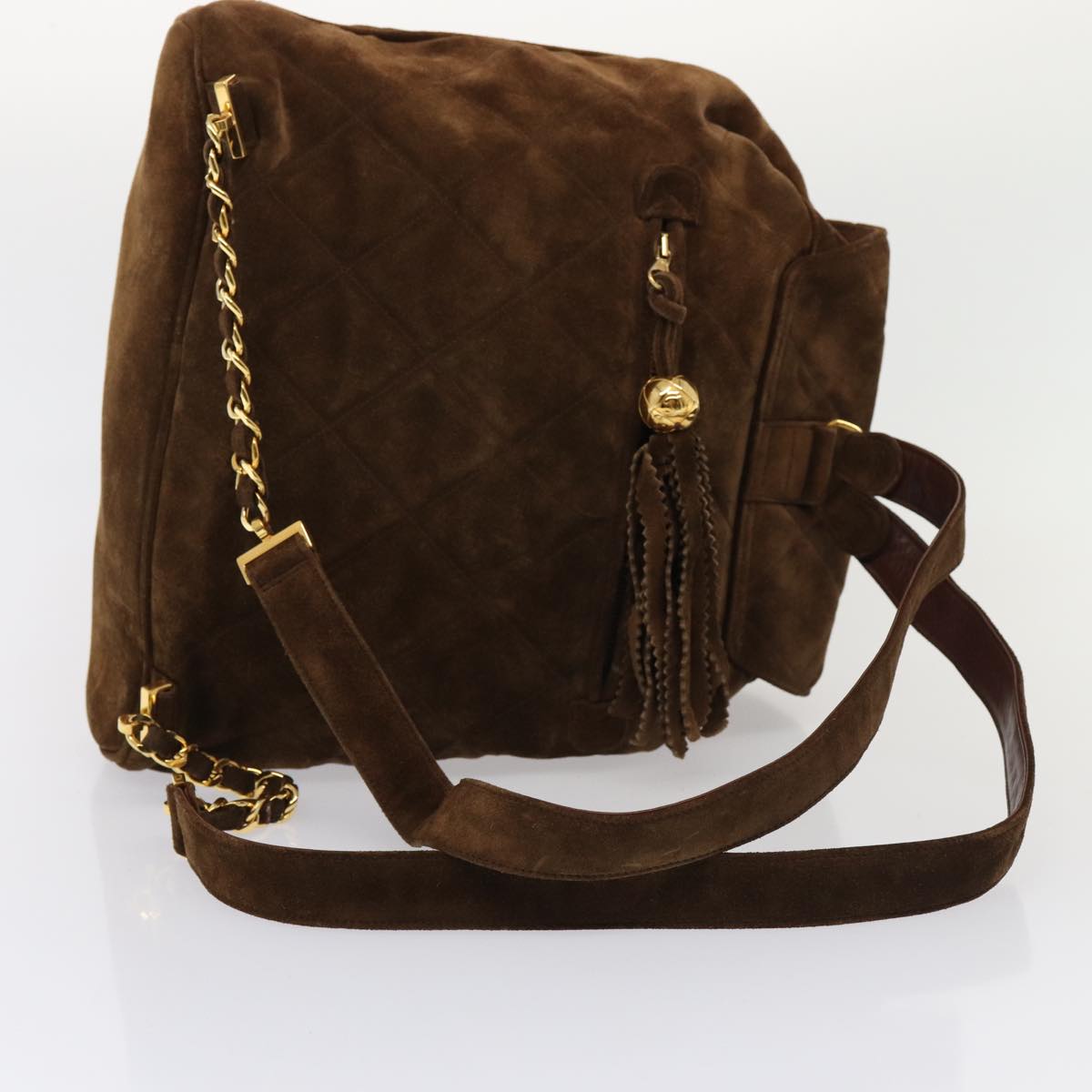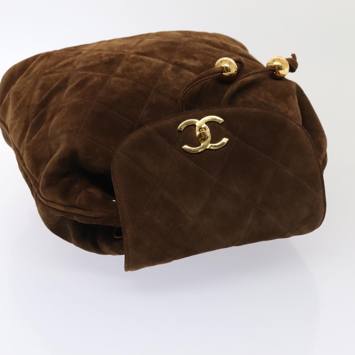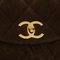 Top Quality Chanel Hand Bag Suede Brown Gold CC Auth 87765A