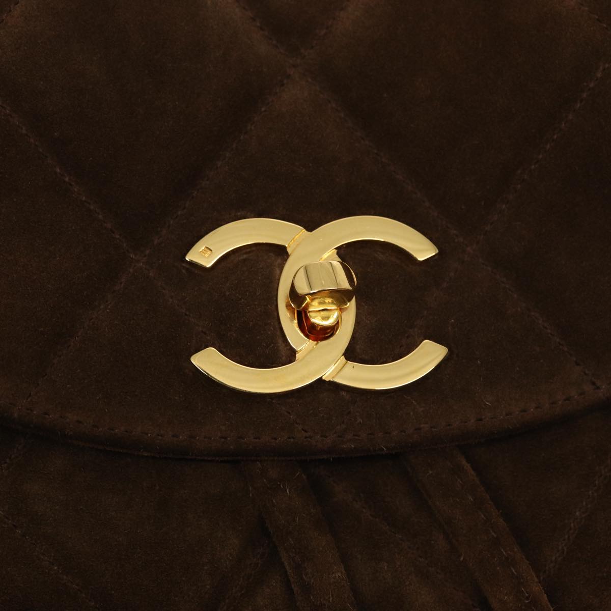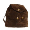 CHANEL Hand Bag Suede Brown Gold CC Auth 87765A