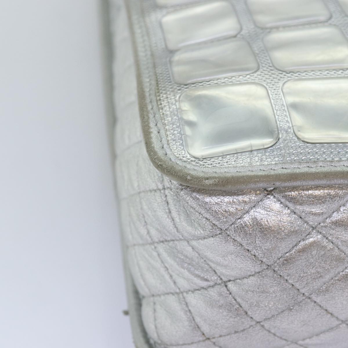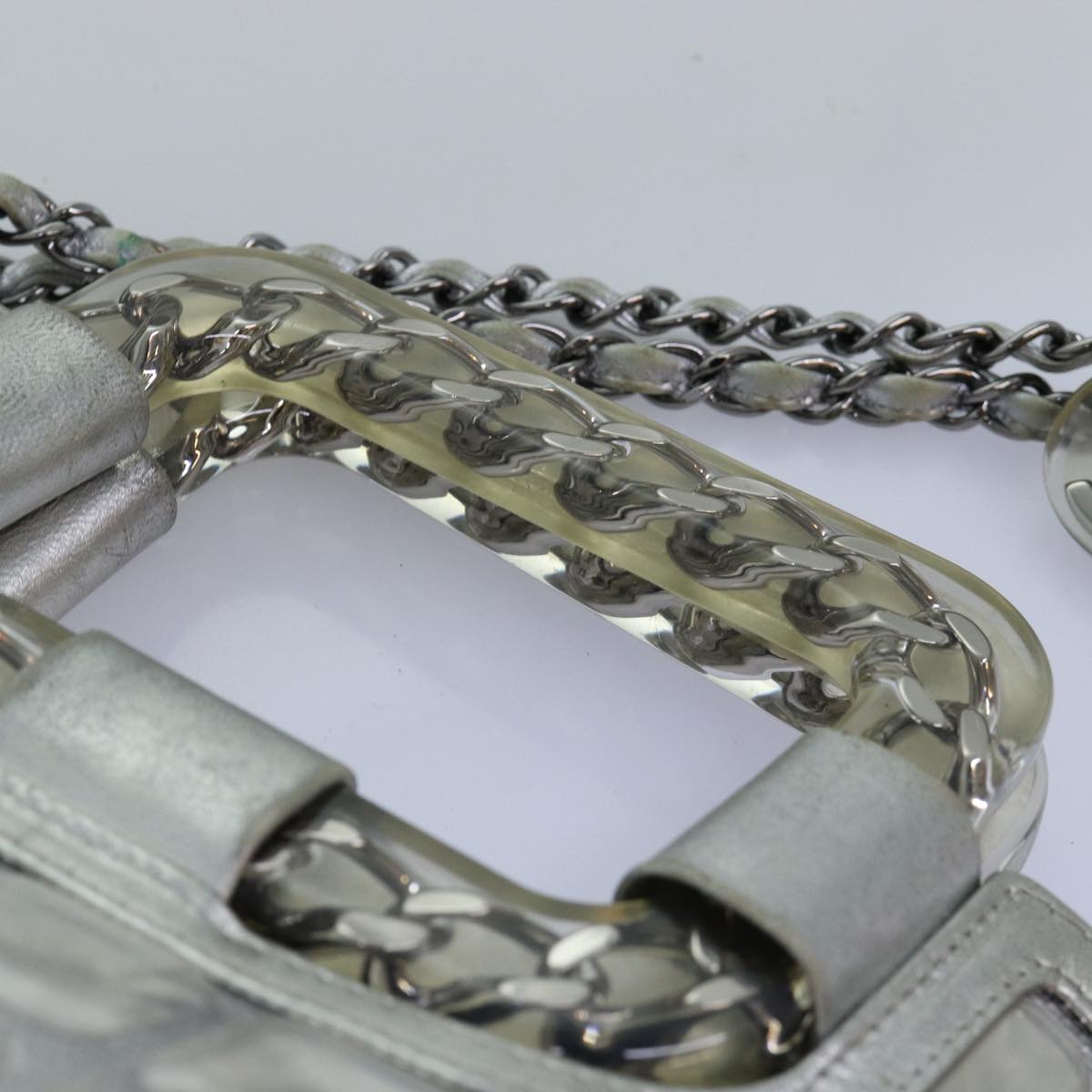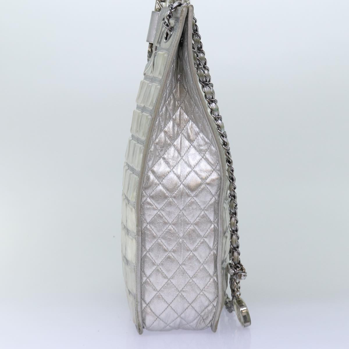 Top Quality Chanel Ice Cube Chain Shoulder Bag Vinyl 2way Silver CC Auth 71650