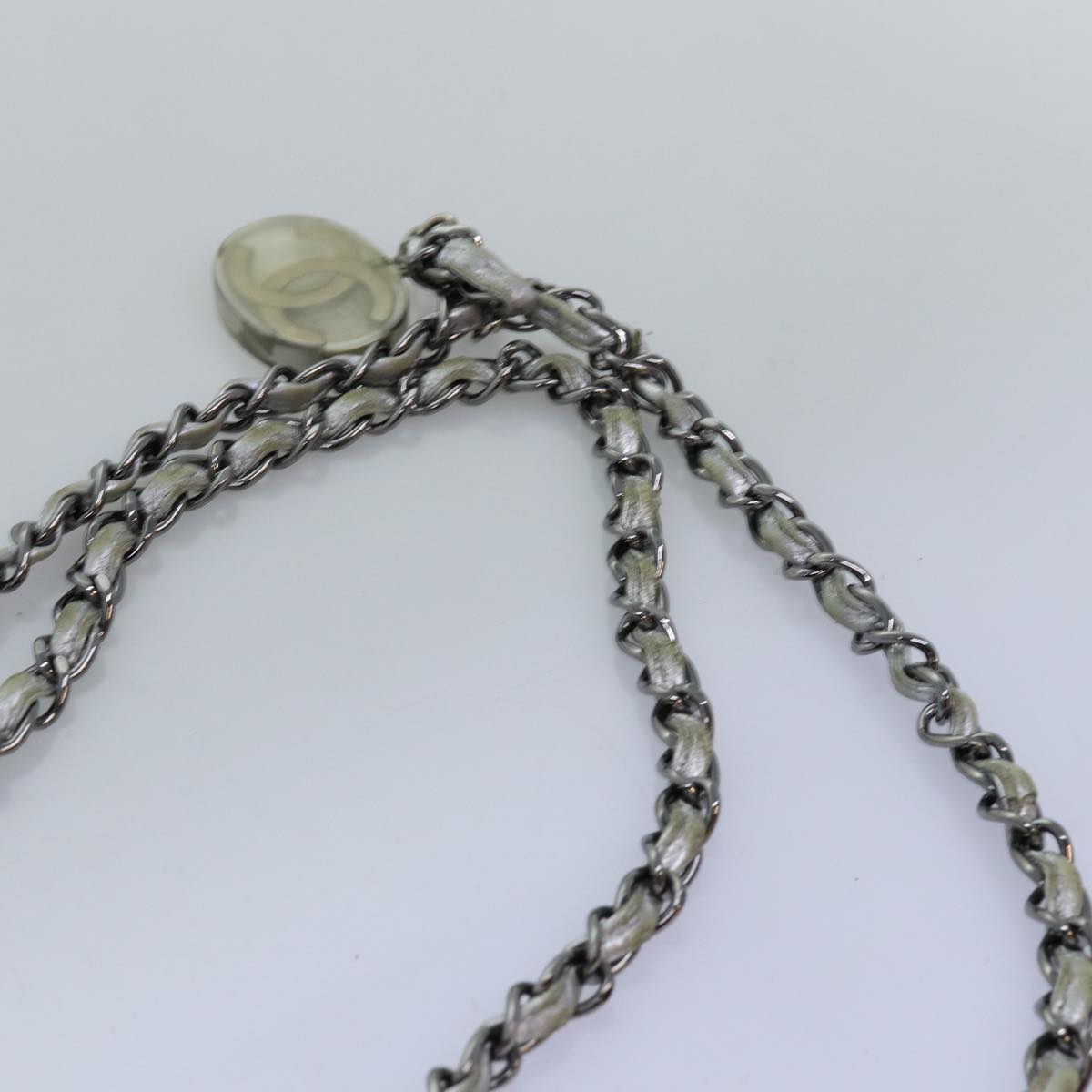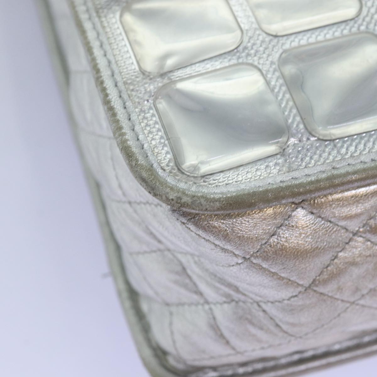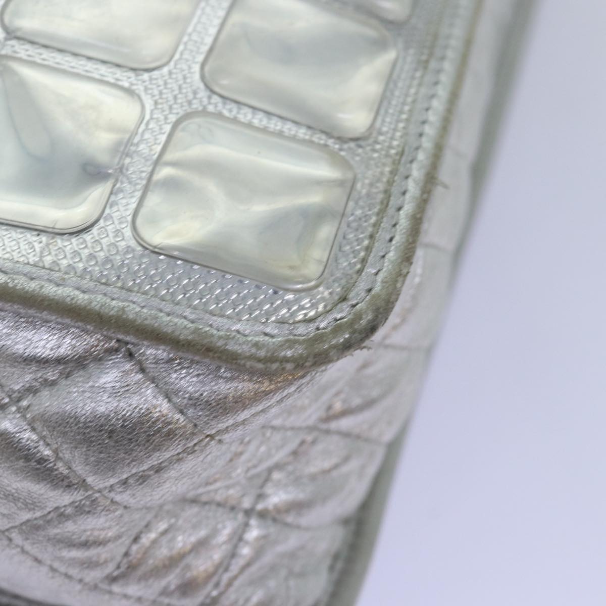 CHANEL Ice Cube Chain Shoulder Bag Vinyl 2way Silver CC Auth 71650