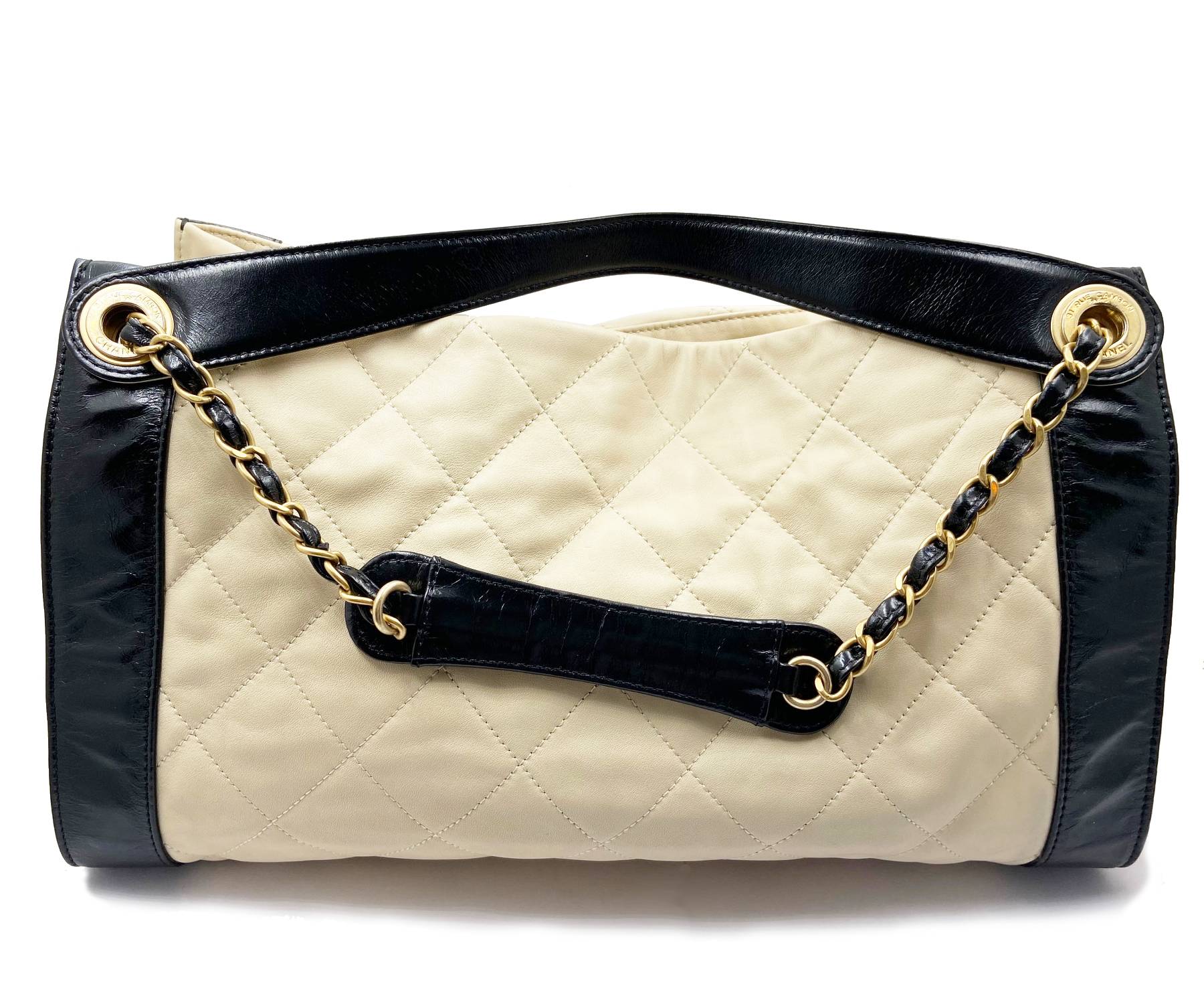 Top Quality Chanel Ivory Black Leather Hand Shoulder Bag