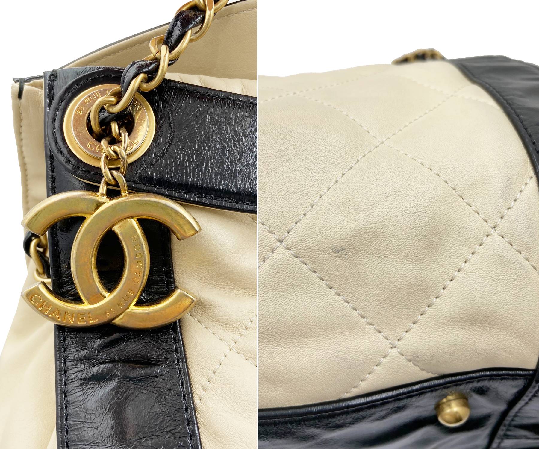 Chanel Ivory Black Leather Hand Shoulder Bag.