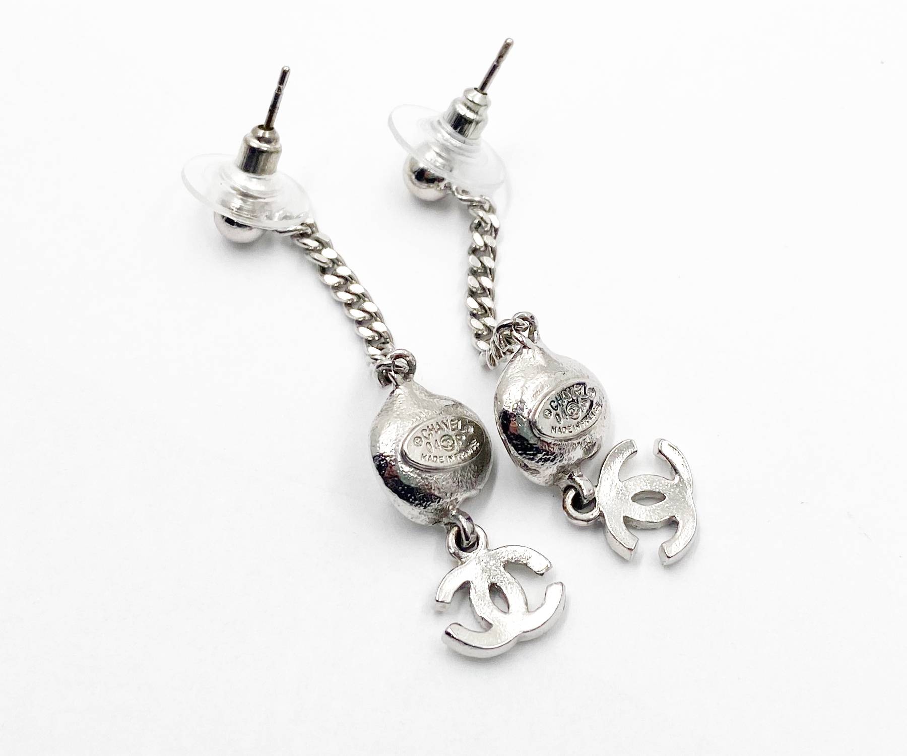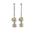 Chanel Ivory Enamel Camellia CC Crystal Chain Dangle Piercing Earrings.