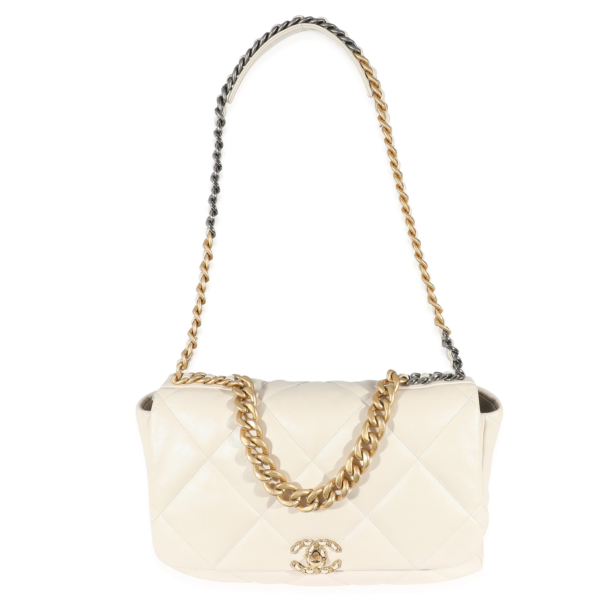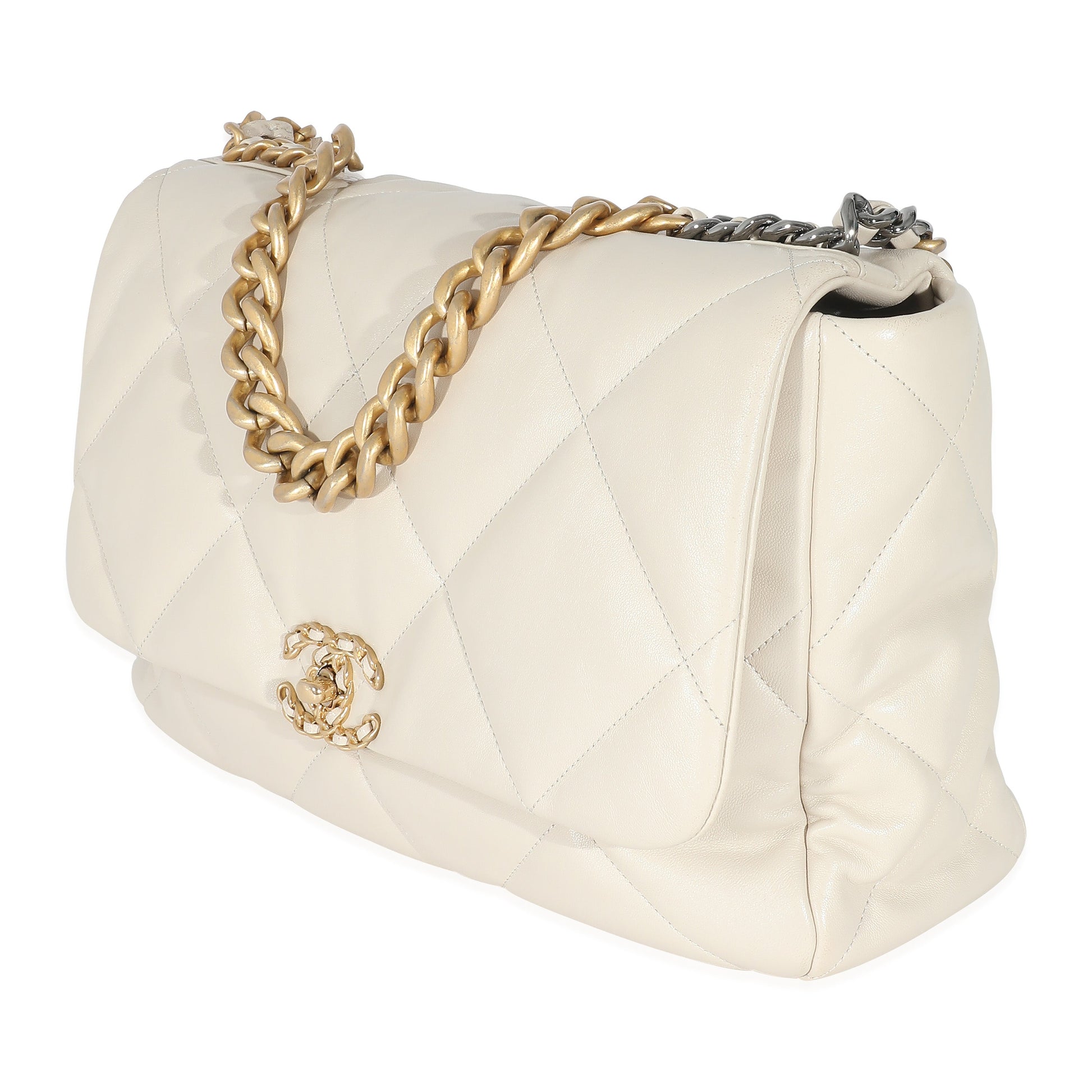 Listing Title: Chanel Ivory Shiny Quilted Lambskin Maxi Chanel 19 New Bag