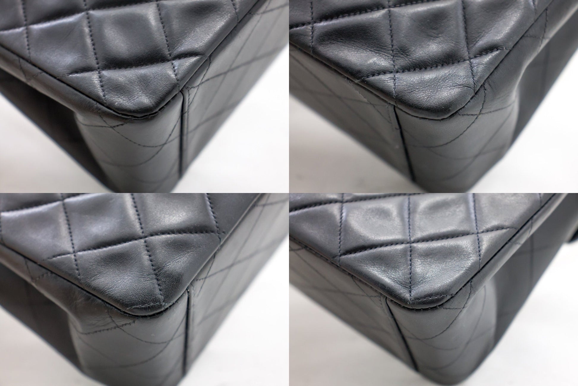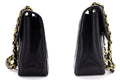 An CHANEL Jumbo 13" Maxi 2.55 New Chain Shoulder Bag Black made of black Lambskin.