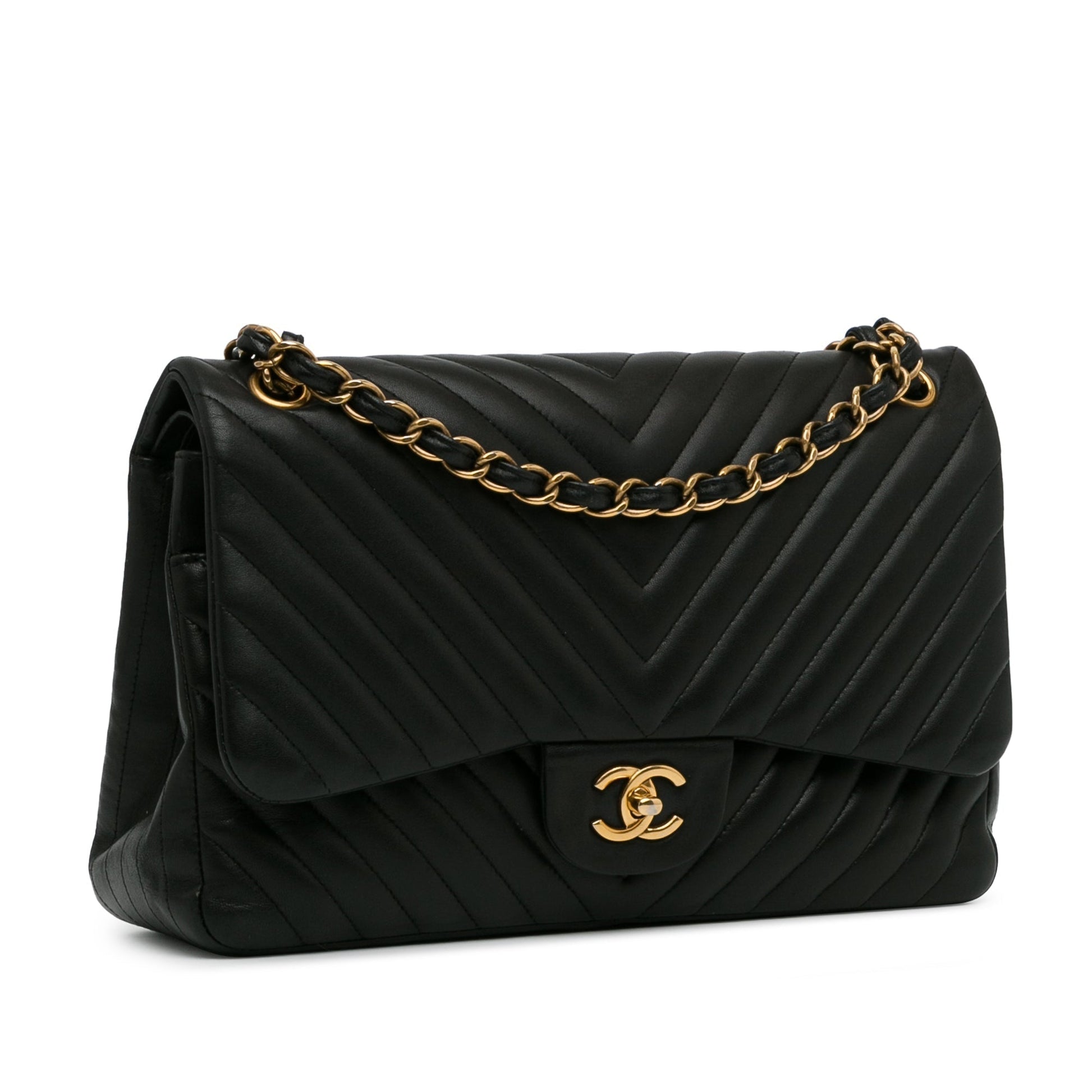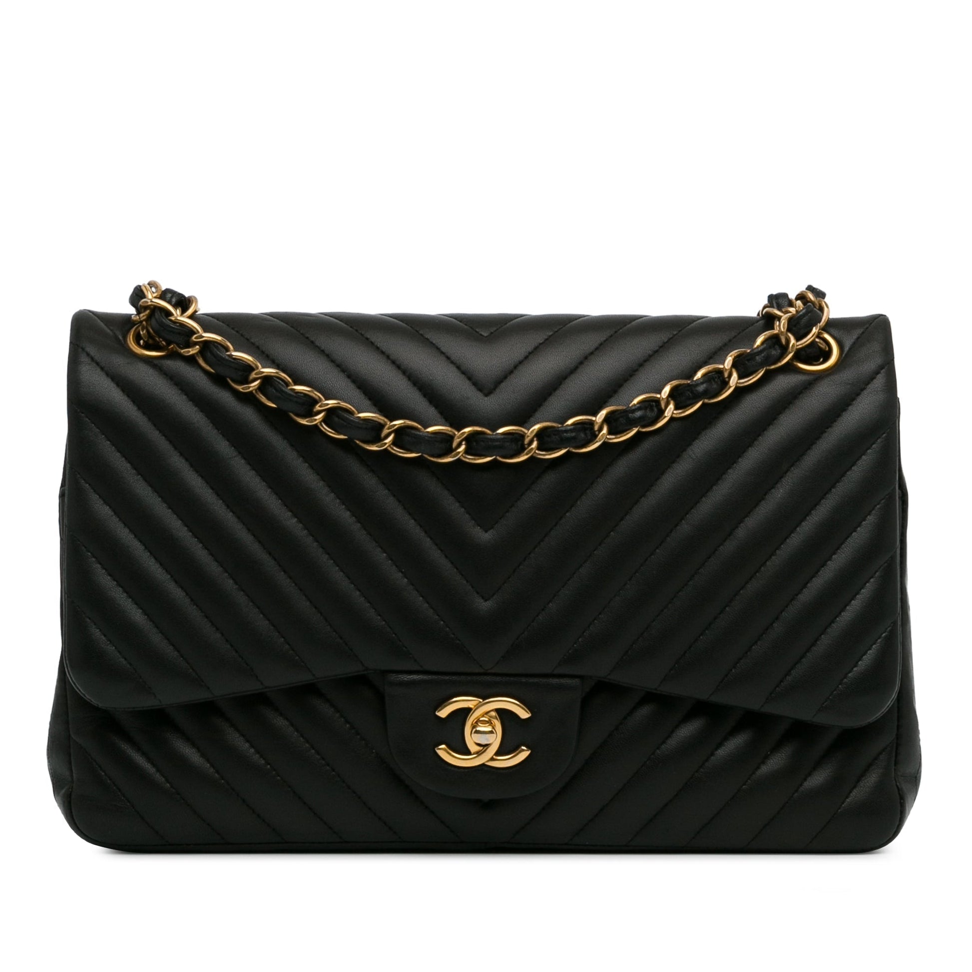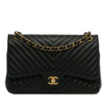 Top Quality Chanel Jumbo Classic Chevron Lambskin Double New Black
