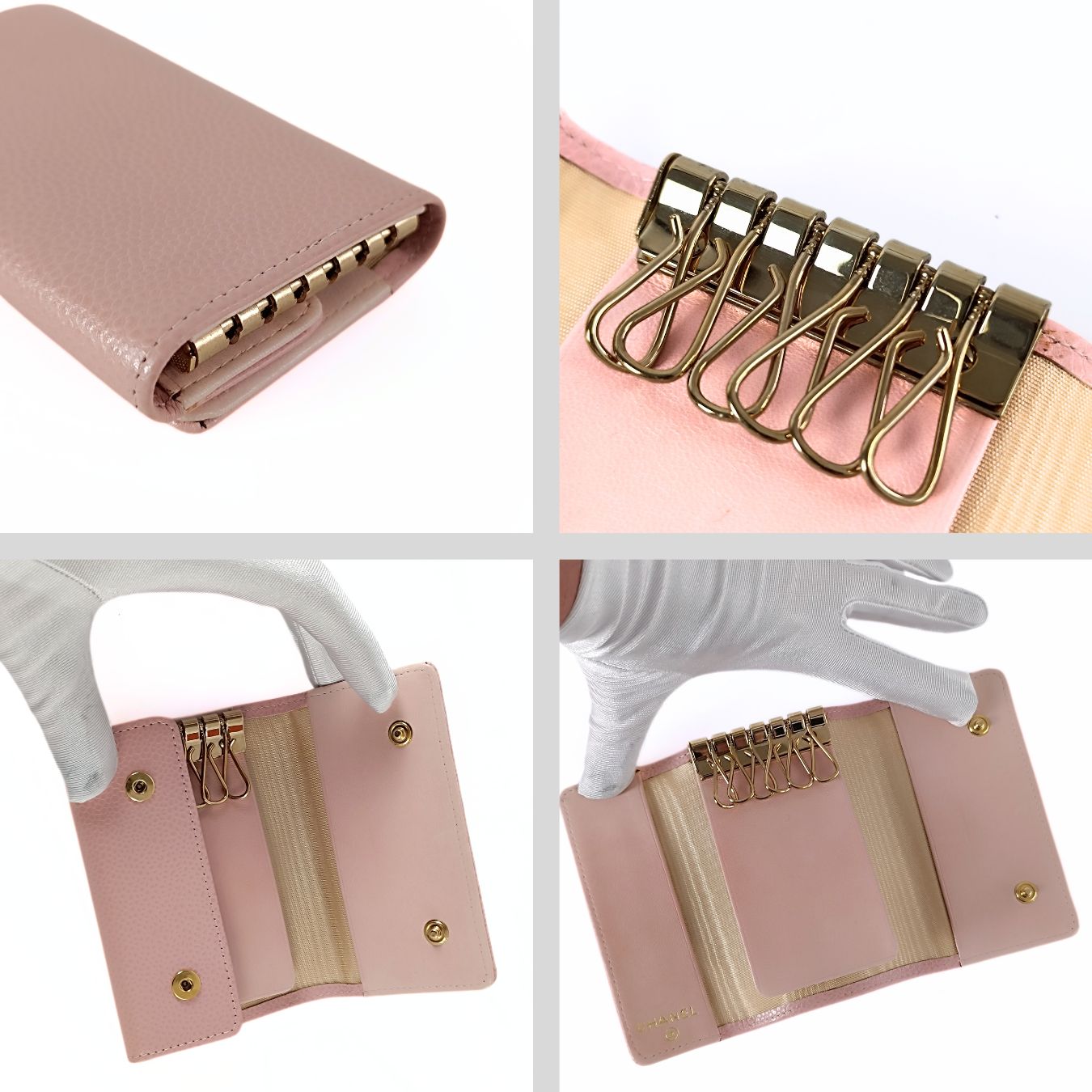 Top Quality Chanel key ring 6 hooks in pink Cavier leather
